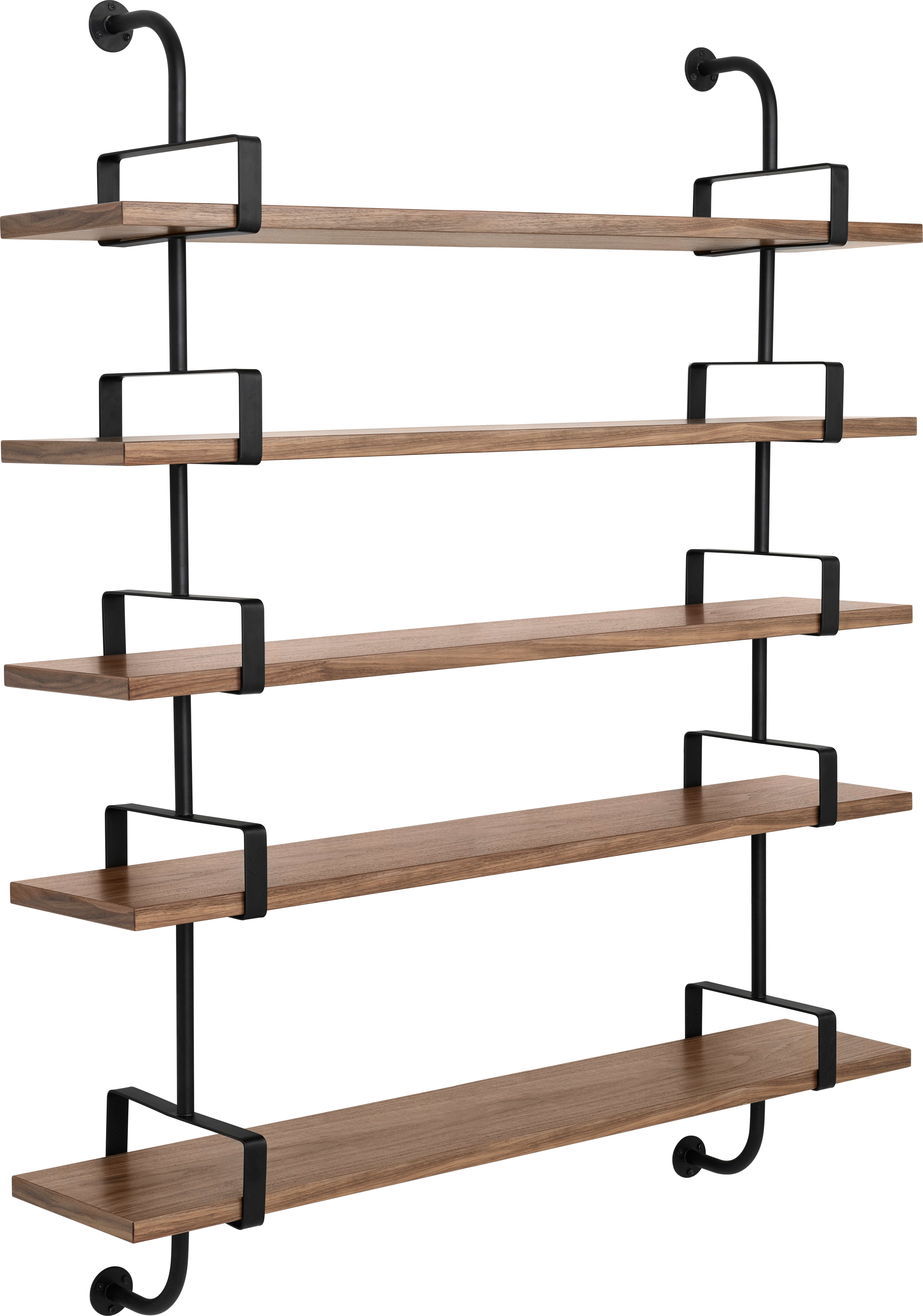 Available in two widths – 95 cm and 155 cm – and in versions with 1, 3, 4, or 5 shelves, the Démon Shelf can be adapted to any interior: from a home office to a living room or dining room. The shelves are made of wood stained in oak, American walnut, or black ash in a matte finish, complemented by minimalist powder-coated brackets.