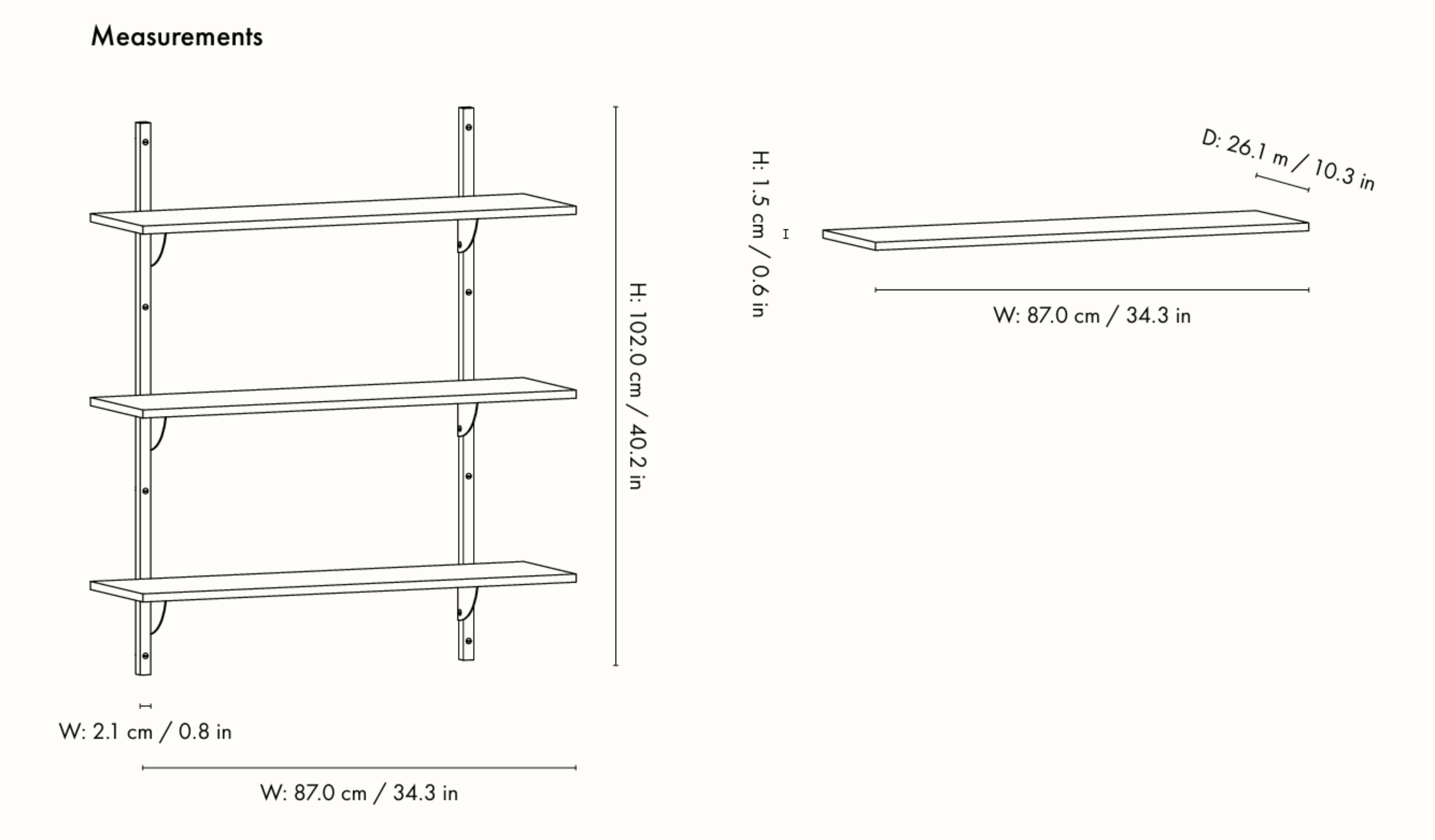 Sector Triple Wide Three-Tier Shelf in black ash finish is a modern interpretation of classic mid-century shelving. It stands out with its sturdy construction, minimalist form, and timeless combination of black wood and brass. The visible mounting screws and massive, vertical solid wood profiles emphasize the architectural character of the design, which fits perfectly into modern and industrial interiors.