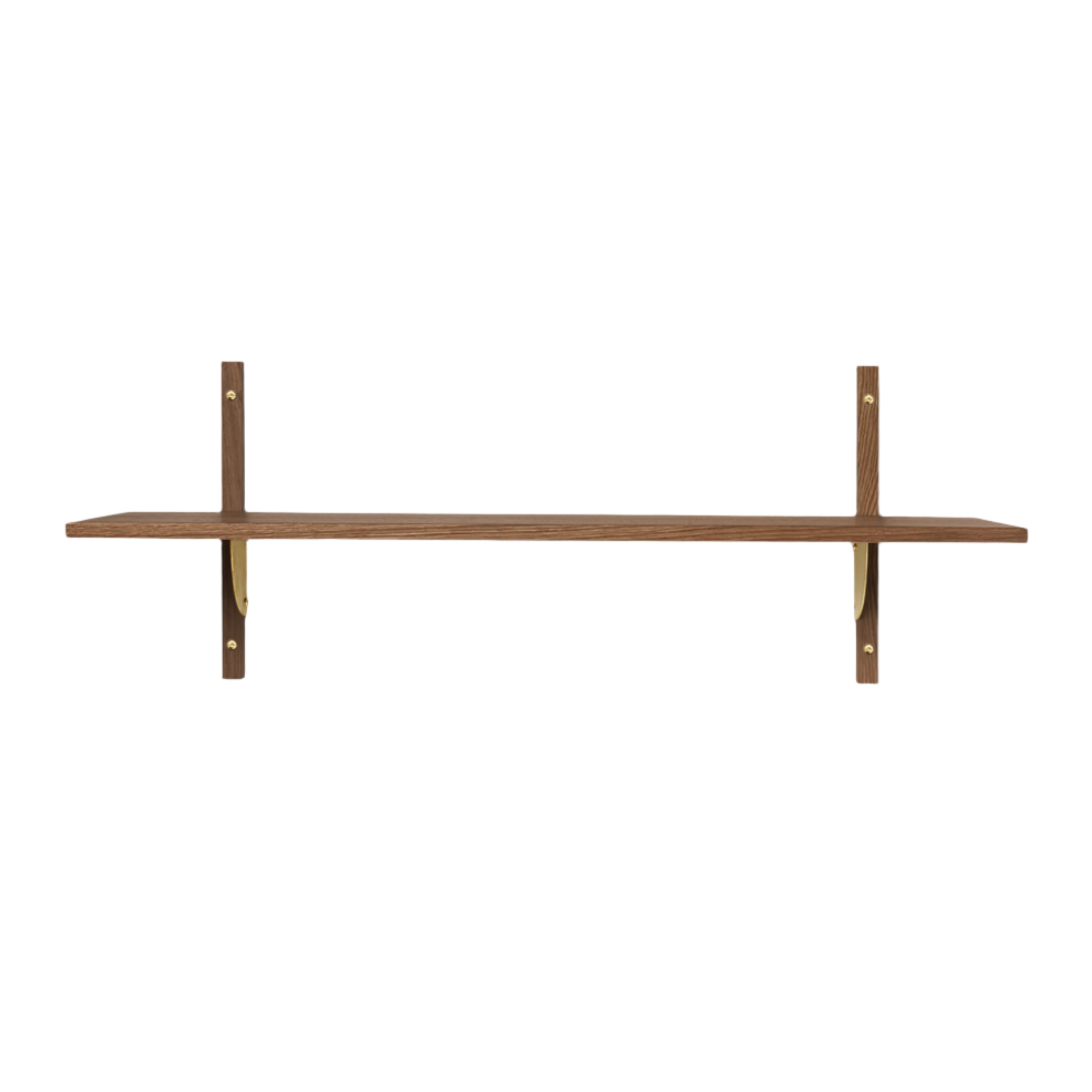 Sector Wide Shelf is a contemporary interpretation of classic mid-century bookcases, combining simplicity of form with timeless elegance. Made from veneer and solid oak wood in a smoked oak finish, and accented with brass brackets, it brings a refined character to the interior. The visible mounting elements add an authentic, architectural expression.