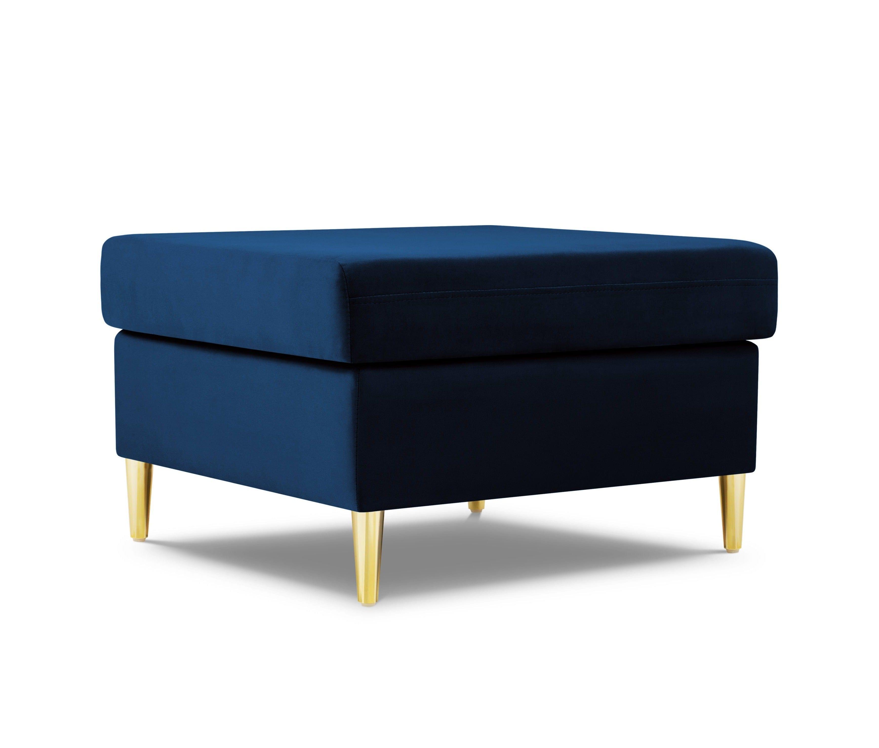 Pouf velvety kyoto blue with a golden base