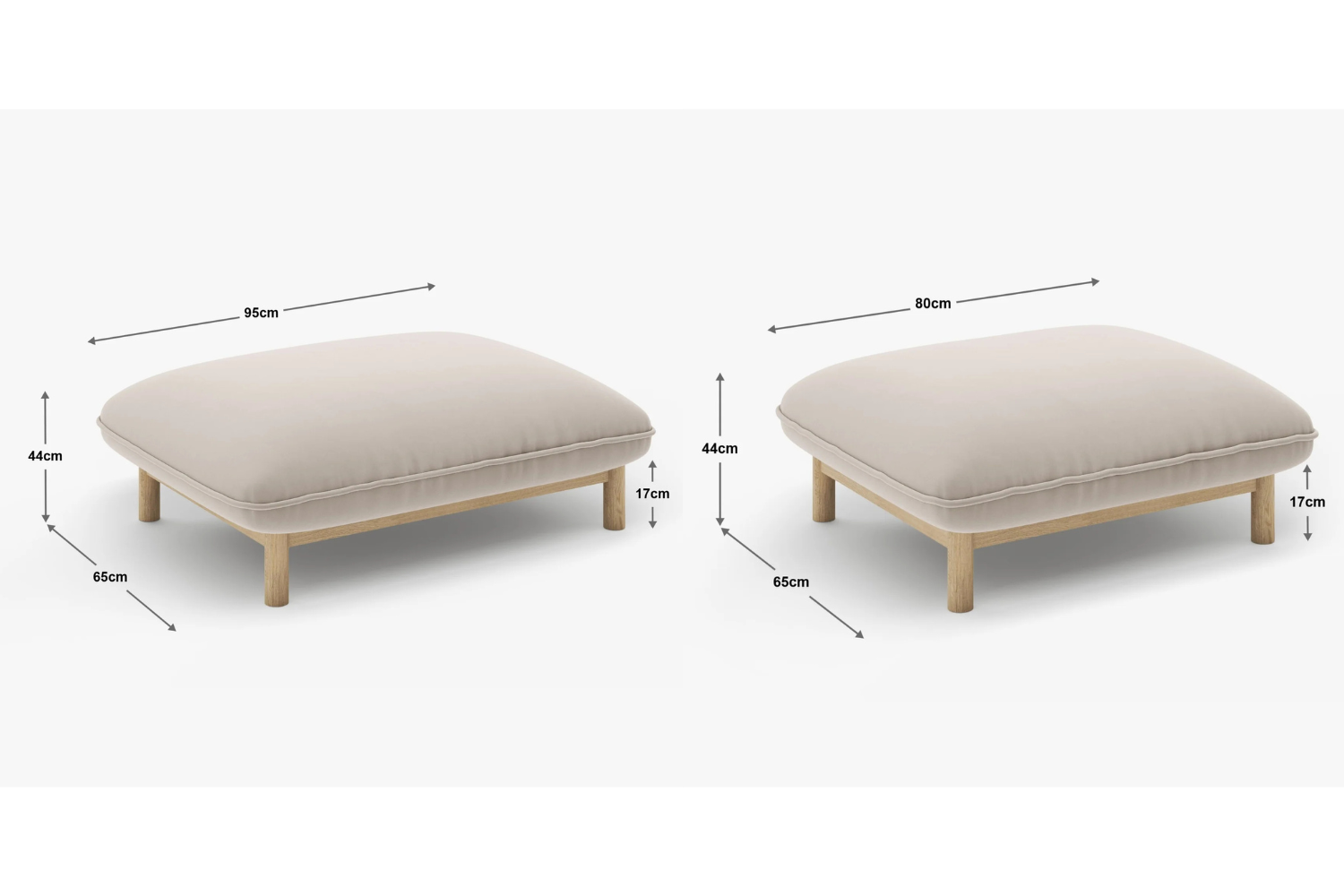With its softly padded seat, pouf is perfect as a footrest, extra seating, or a standalone accent in the living room. The wooden frame on high legs gives it a natural character, and the custom-made production in Europe ensures high quality and attention to detail.