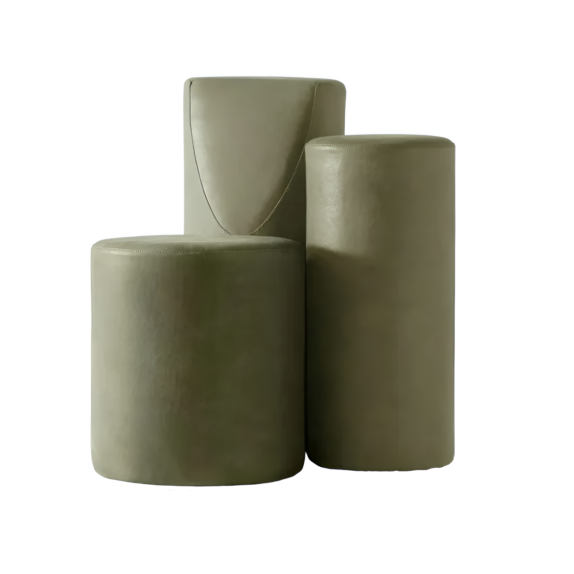 The pouf is available in a version upholstered in fabric or leather and is perfect for both a home living room and an office, hotel lobby, or conference room. Its form is not only decorative but also ergonomic – ideal for relaxation, work, and meetings in a modern style.