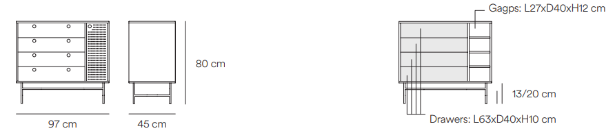 Punto will also work great as a cabinet for the living room be the hallway. Versatility and multifunctionality are just a few of the qualities that will make you fall in love with it. The use of white metal has allowed the cabinet to combine a loft character with coziness and elegance.