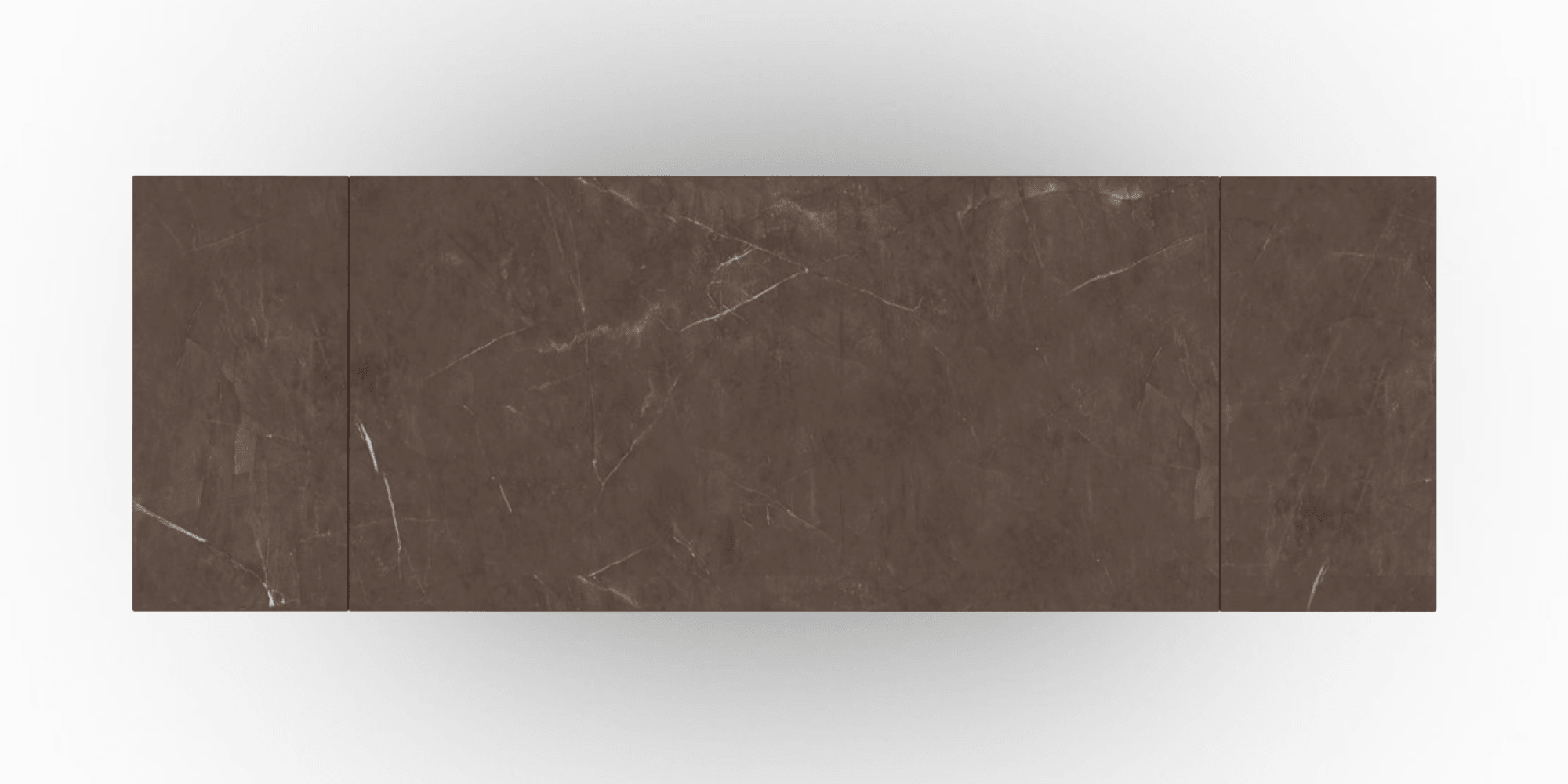 His visual lightness derives inspiration from the concept of grateful bending and tilting sheets, the culmination of which is a characteristic base. This basis provides a stable platform for a retractable top, which thanks to the patented mechanism extends to an unusual length of up to 3 meters. The circuit of the countertop reflects the structural shade of the base, revealing the intriguing detail - double metal