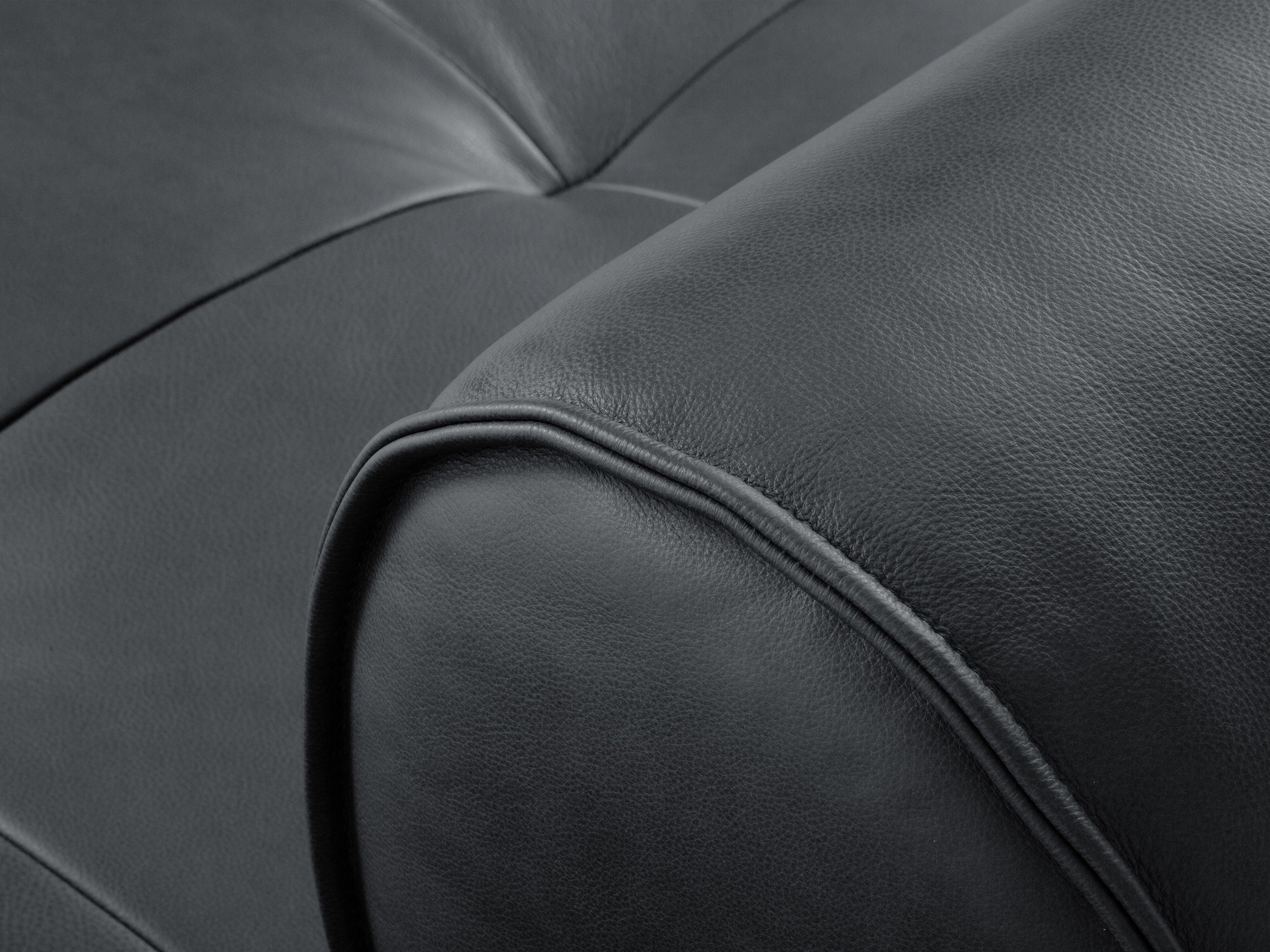 Leather corner sofa for four people Lily adds a touch of timeless elegance to any interior. Its unique form is a result of a modern approach to classic leather furniture. The rounded edges of the seats have an exceptionally original shape, while the stylish backs provide the right comfort during relaxation.