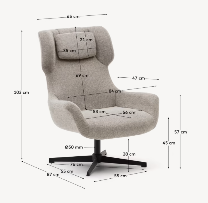 With the ability to swivel, the beige armchair Zalina offers flexibility in adapting to your needs. Whether you are looking for the perfect spot to read your favorite book, relax to music, or simply take a moment to unwind, this armchair is ready to meet your expectations.