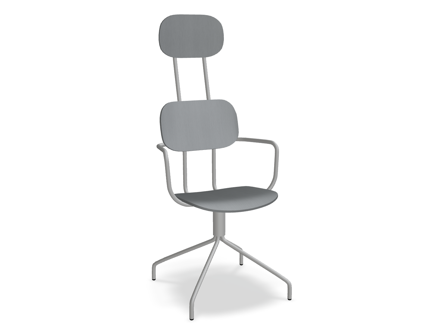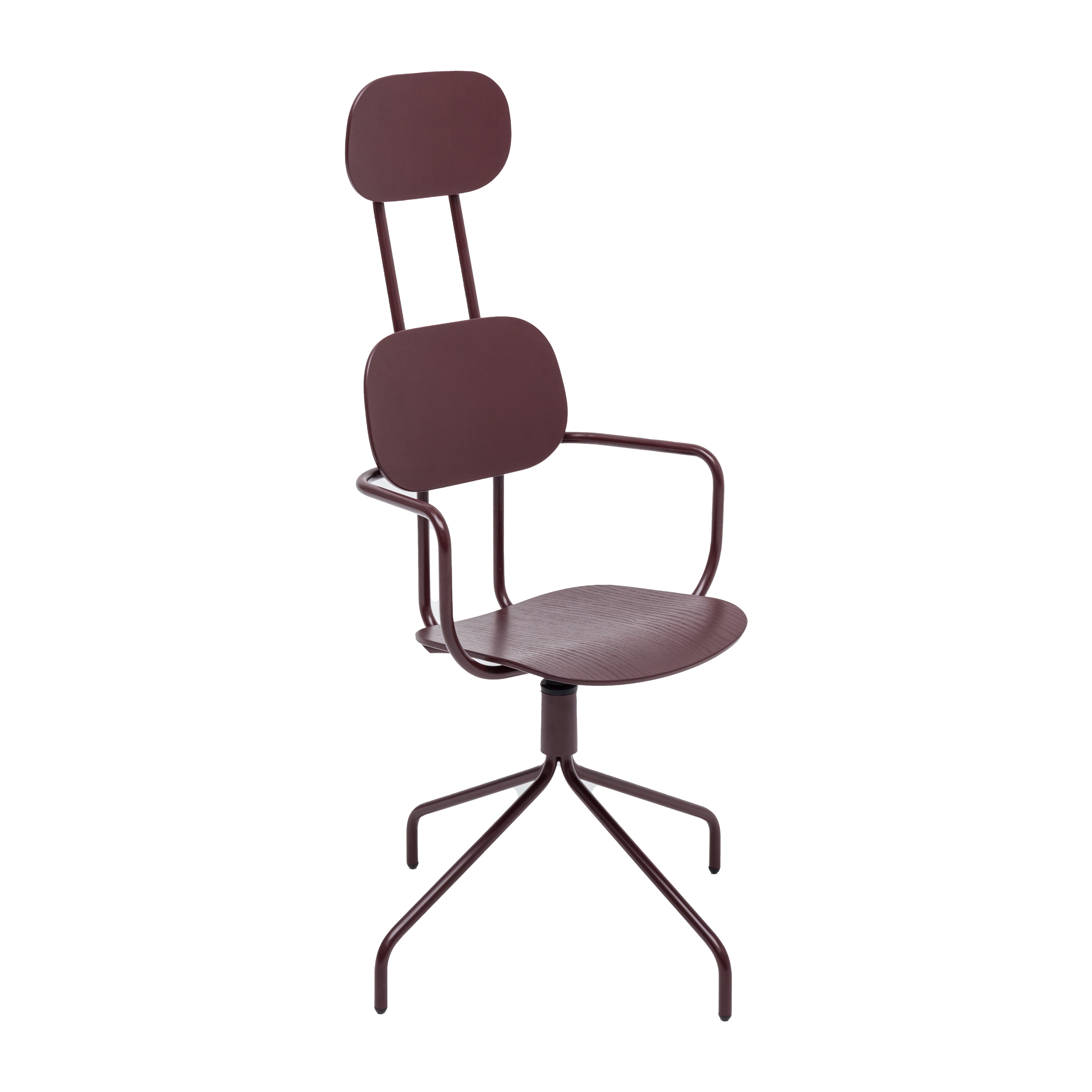 Swivel chair The new school with a headrest, designed by Studio Form US with Love, attracts attention with a modern form with double support. This backrest not only emphasizes modern design, but also provides excellent support for the whole back. The rotating base guarantees freedom of movement, and optional armrests further increase the comfort of use. The plywood version is distinguished by durability and ease of care, which makes it an ideal choice to the space used by many people.