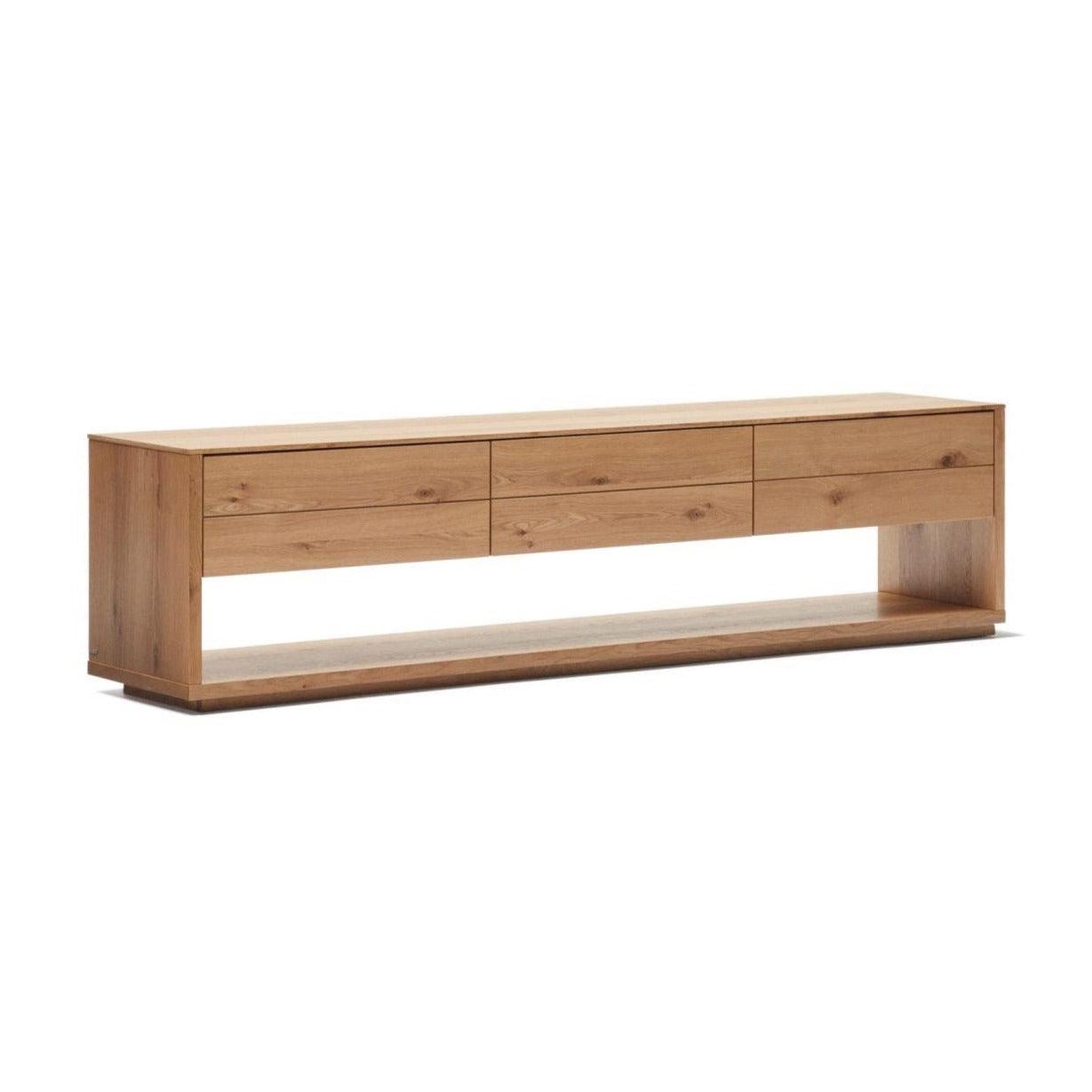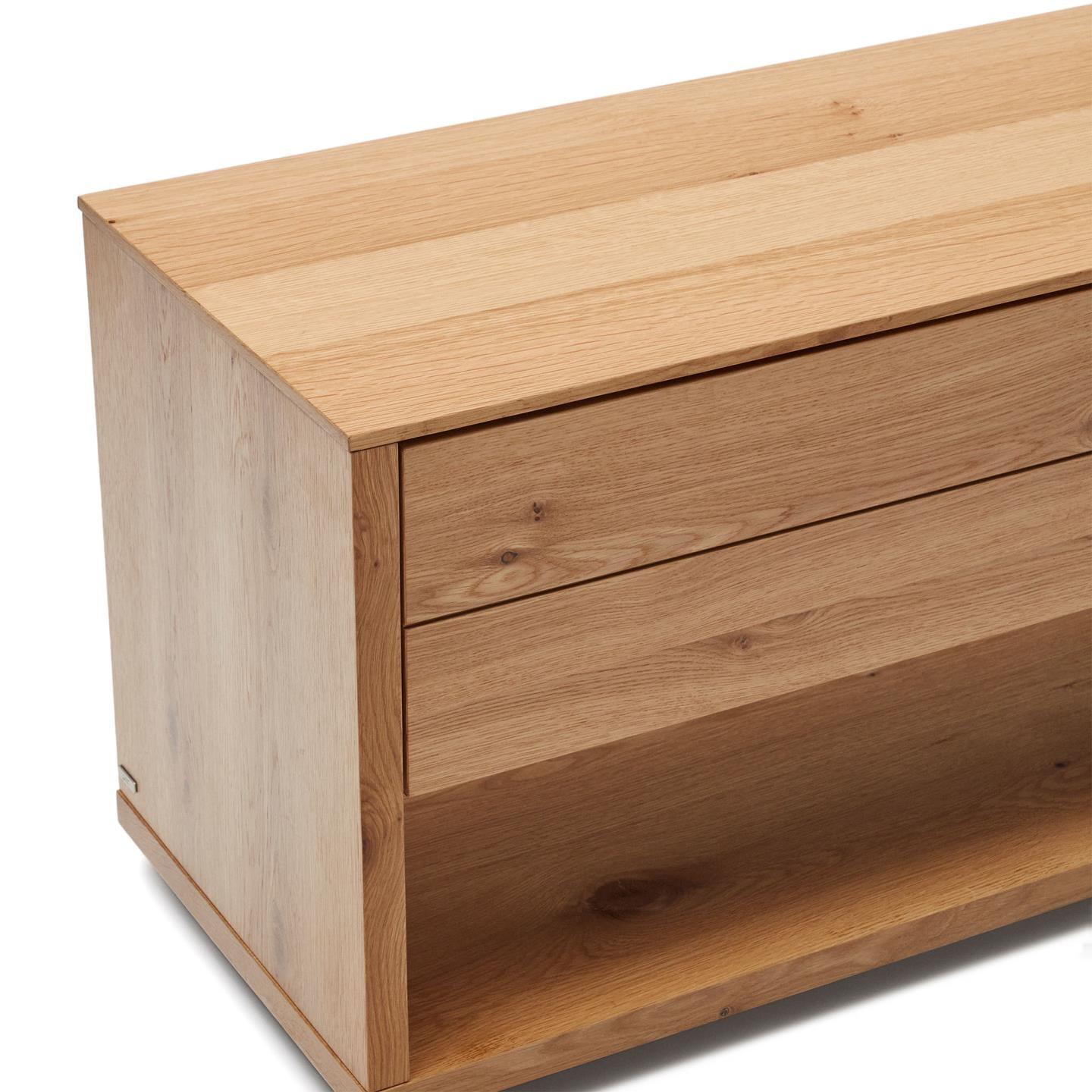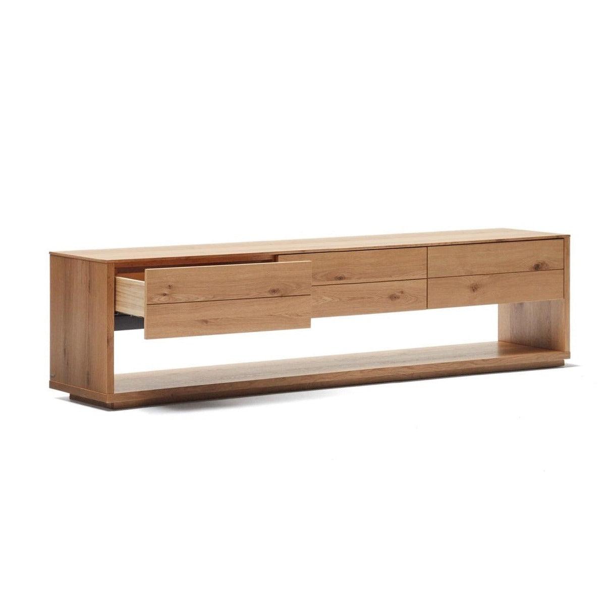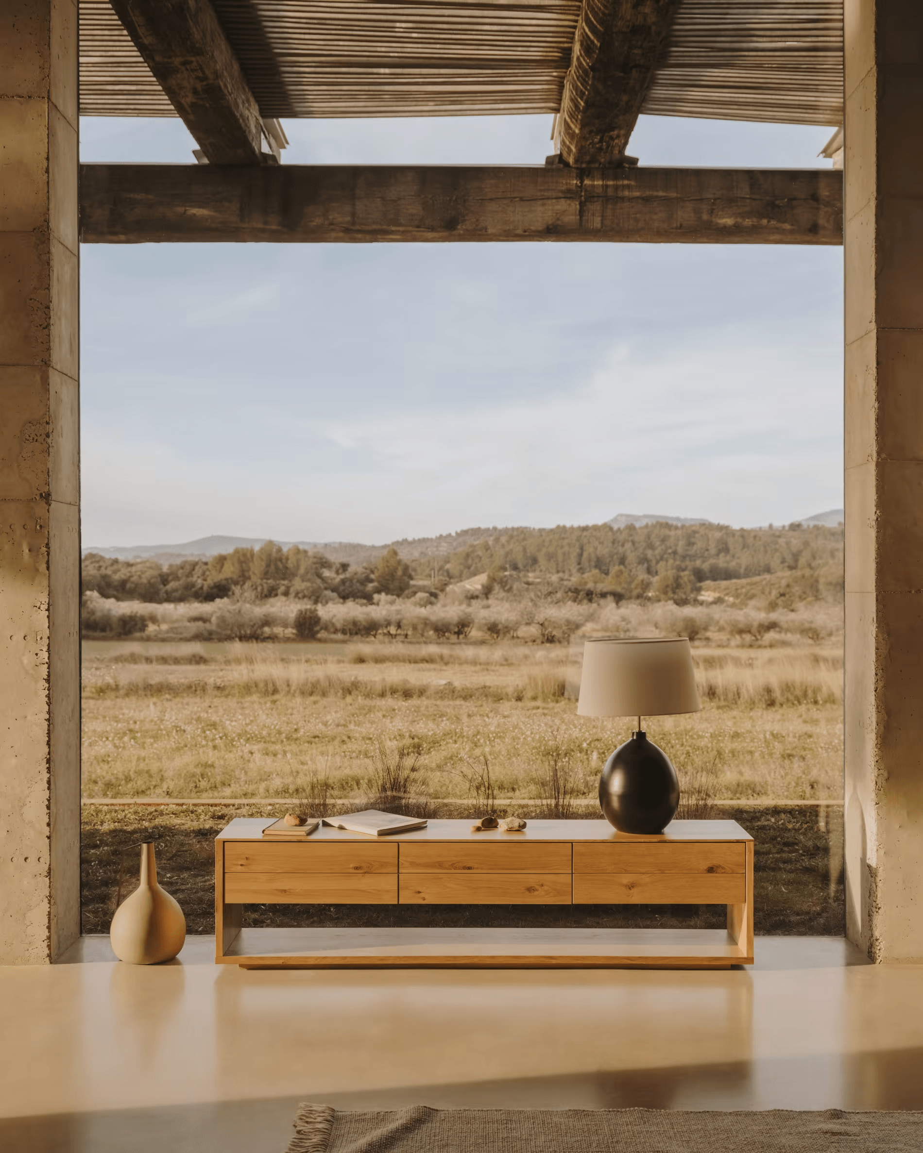 Alguema TV cabinet, created by the renowned design team at Kave Home, presents a unique proposition for those seeking tranquility and relaxation in their interiors. The combination of minimalist style with refined oak veneer in a natural finish makes this collection not only functional but also aesthetically stunning.