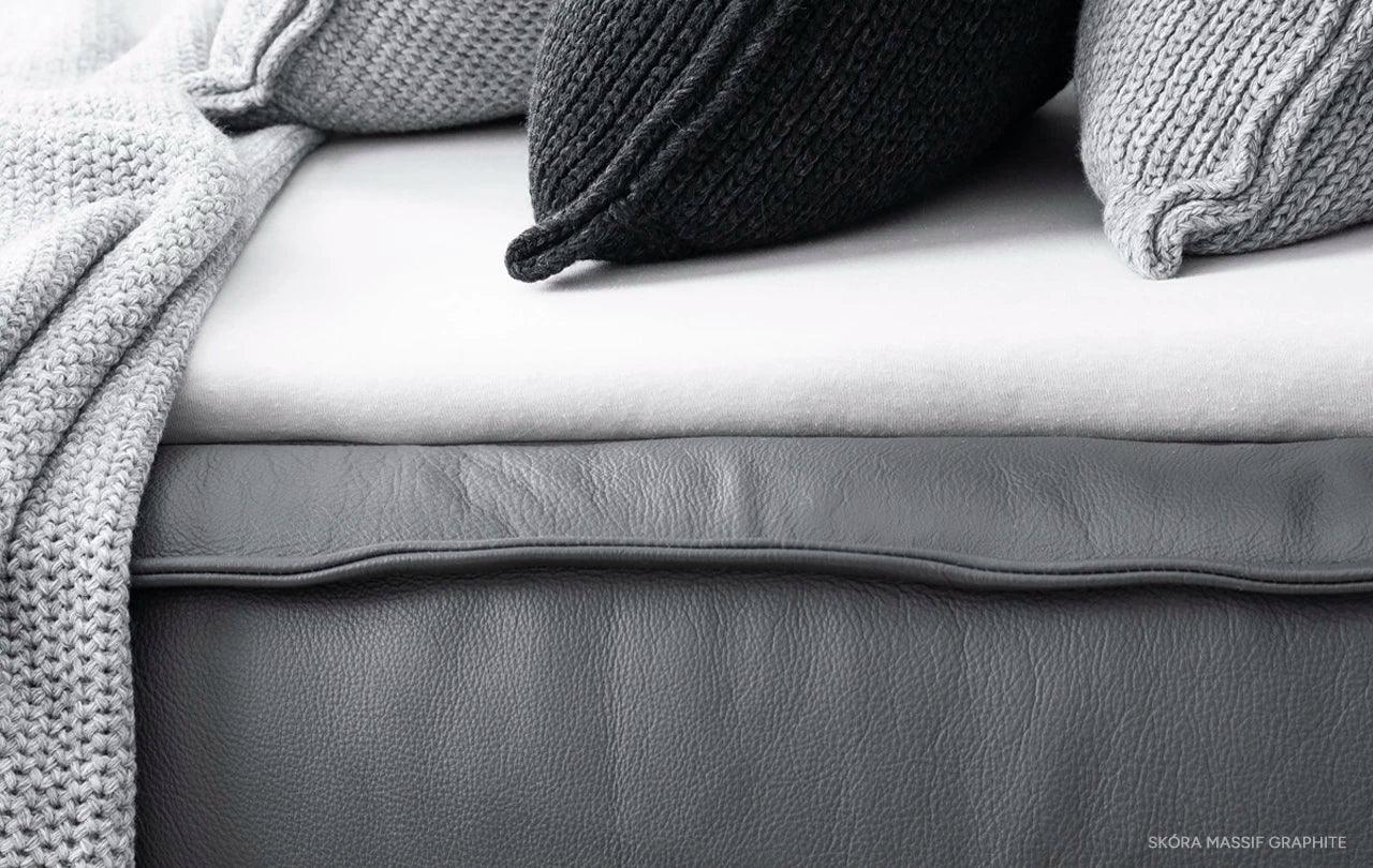 Additionally, the elegant bed Santio features a very spacious and high storage box for bedding. This practical solution allows for clever utilization of bedroom space while maintaining order.