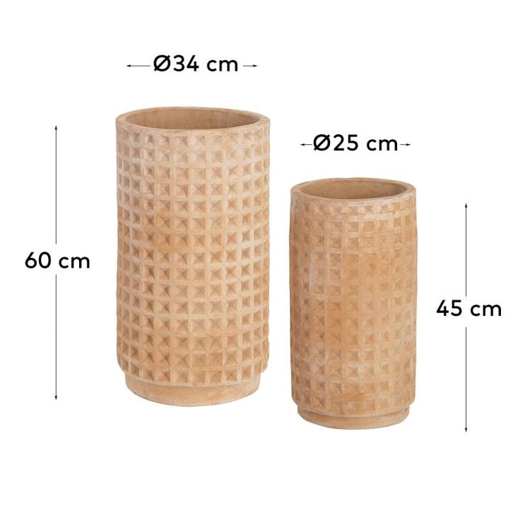 Set of pots Cela is an essential element for your plants, providing them with excellent outside protection. Made of terracotta, these pots are not only durable and resistant to weather conditions, but also retain the natural atmosphere of your rooms. Terracotta, as a mineral material, guarantees optimal conditions for plants, promoting their healthy growth and development.