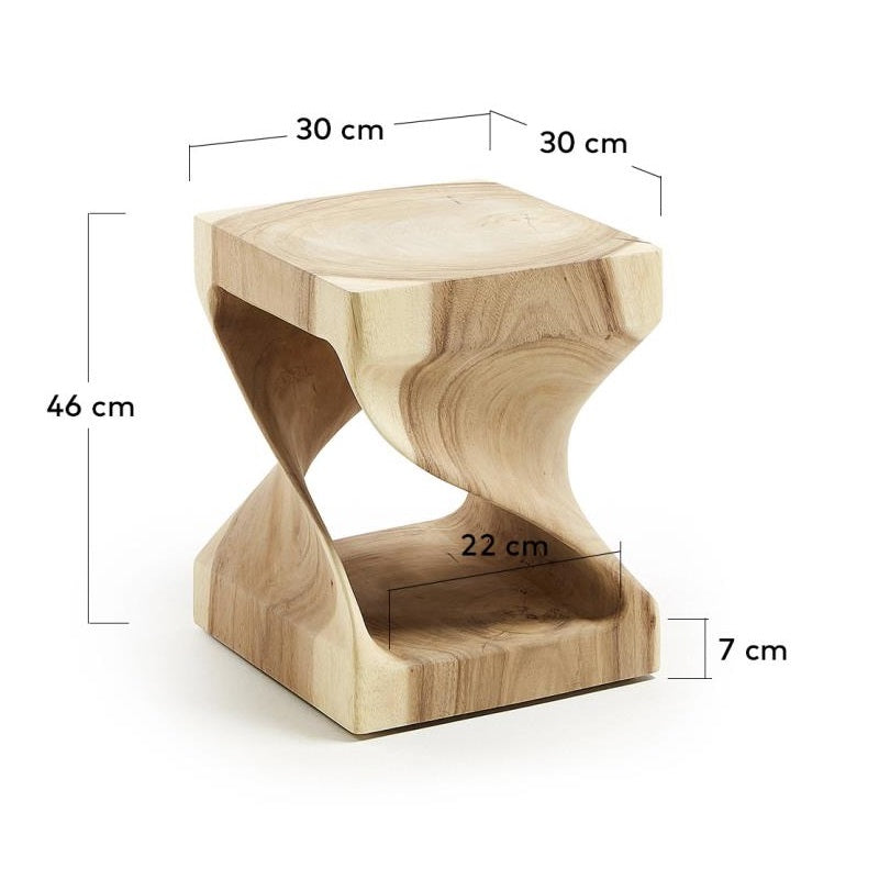 Stolik boczny z rzeźbionym wnętrzem HAKON lite drewno mungur La Forma    Eye on Design