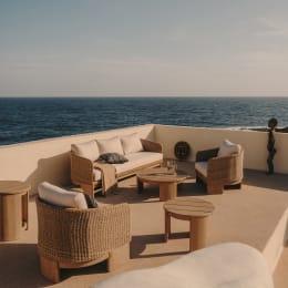 Made of solid eucalyptus wood, auxiliary table Xoriguer not only impresses with its appearance, but also is characterized by exceptional durability and resistance to weather conditions. Each element of the collection is made of natural materials, which makes each table unique, have its own tone and texture, giving a personal charm to each environment.