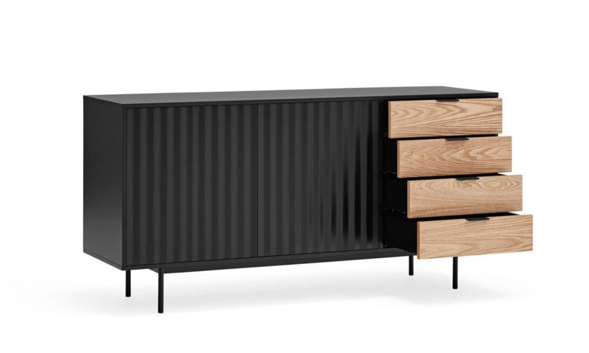 The interesting design and precise finish make Sierra suitable as a chest of drawers kitchen, as well as a chest of drawers for the living room. The natural structure of wood perfectly complements the black color, which serves as a kind of base, giving a modern touch to the entire construction.