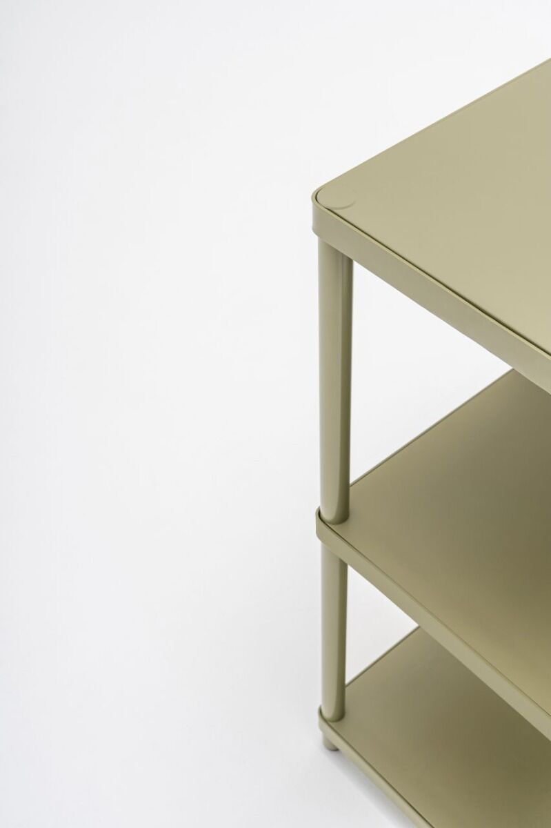Single stilt metal shelf