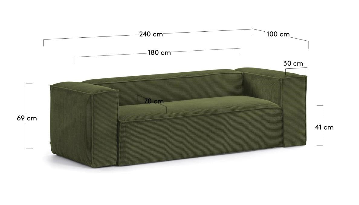 Sofa 3-person green corduroy block