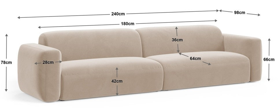 Modern sofa Strino combines minimalist design with exceptional comfort. Its compact dimensions make it a perfect fit for both smaller interiors and larger spaces, serving as an elegant element of living room furnishings. The wide armrests give the structure solidity, while the soft filling ensures comfort during everyday use.