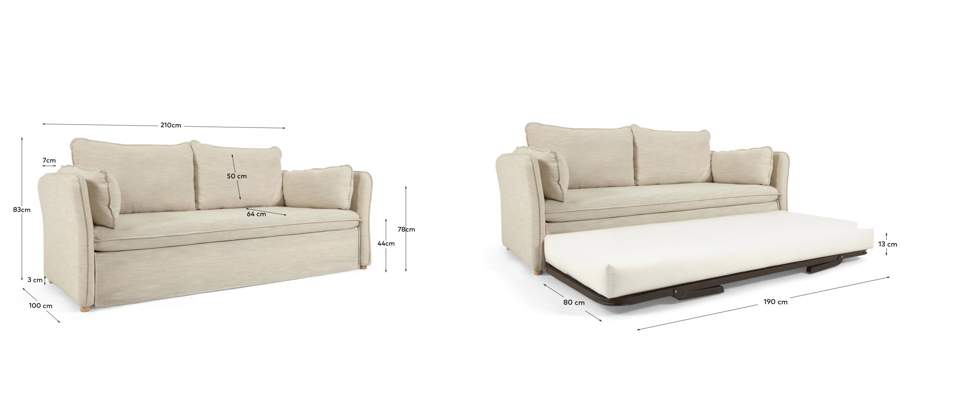 Sofa with a sleeping function Tanit is not just a place to sit or sleep; it is also the realization of a dream for a comfortable and stylish interior. With its linen upholstery, every touch is a moment of pure pleasure, and the exclusive design created by the talented team at Kave Home adds a unique character to the sofa.