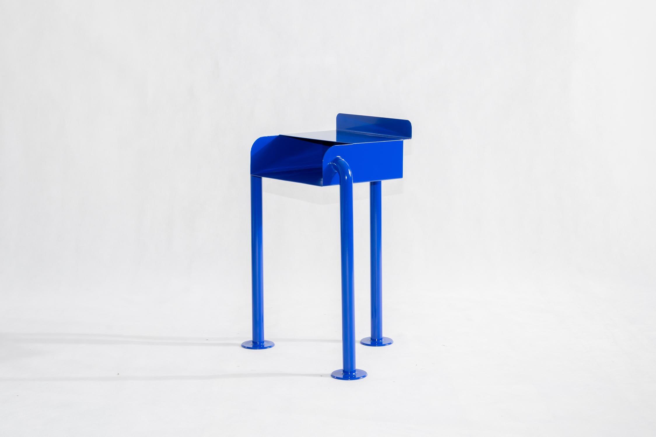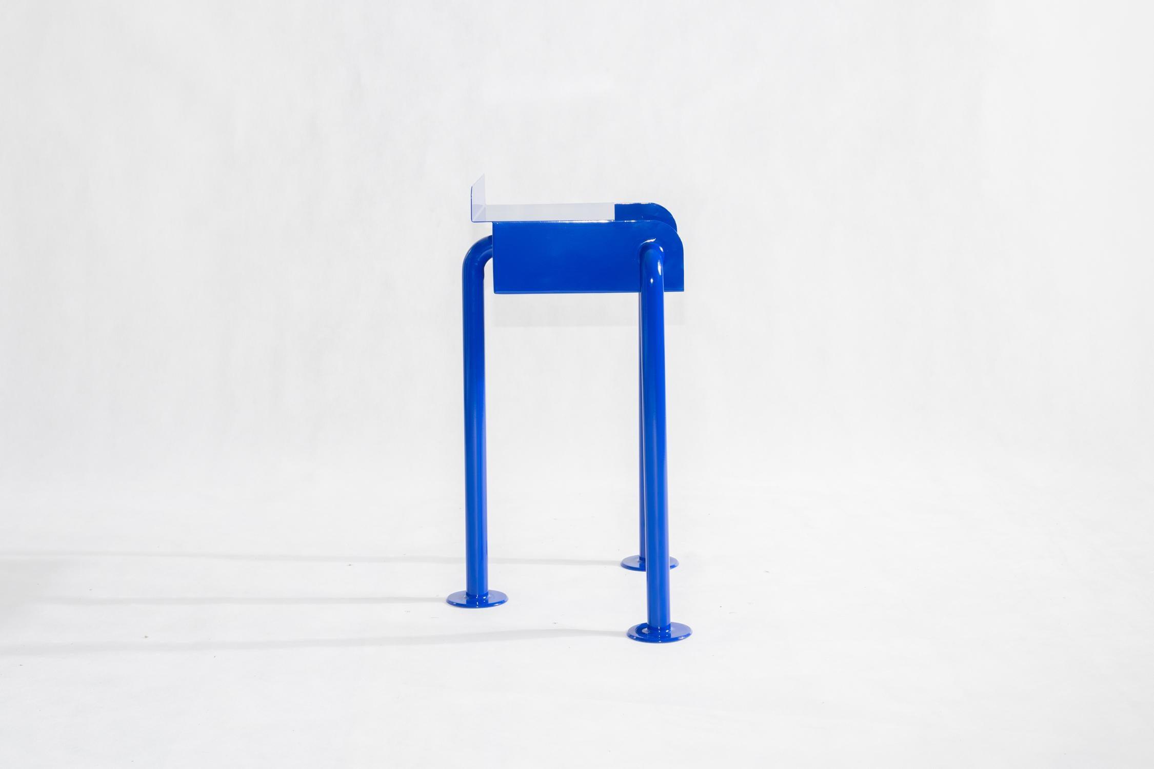 Cyborg is steel side tablewhich can act as console or night table. On the one hand, it resembles a body that is supported on technical devices, on the other hand it captivates with its minimalist and futuristic form, emanating simplicity. Cyborgs are creatures that have decided on a certain form of technological evolution. It is said that everyone can be a cyborg as soon as they cross their human limitations.