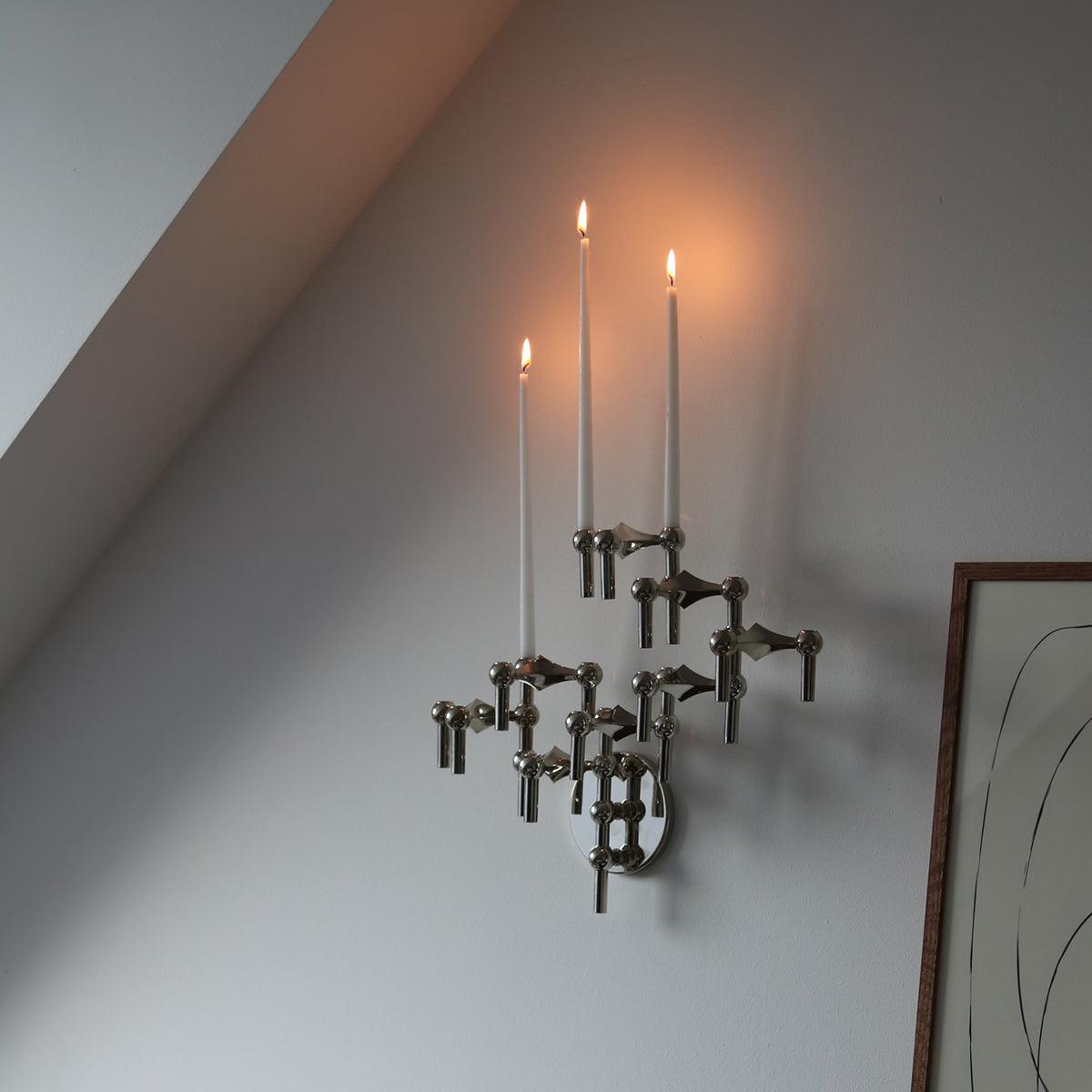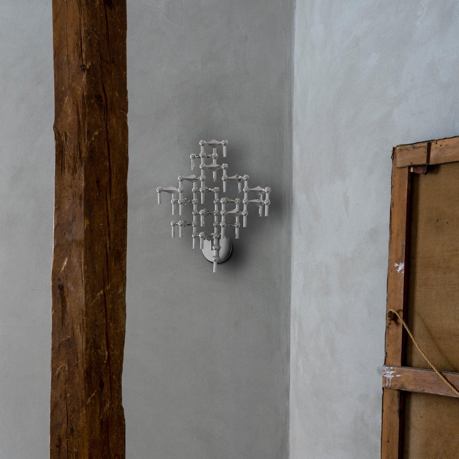 Wall candlestick It is designed to expand the visual capabilities of the STOFF Nagel candle holder. Inspired by iconic design, the wall candlestick allows you to create unique sculptures on vertical surfaces in infinite combinations with a candlestick, bowl and vase. The wall candlestick is subtle and discreet, encouraging to discover individual ways to display the STOFF Nagel collection.
