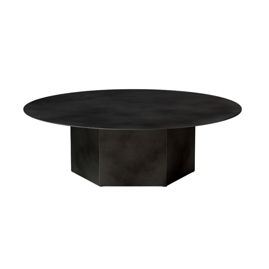 Epic Table is a modern interpretation of a classic form, inspired by the columns of Greek temples and Roman architectural structures. Designed by GamFratesi for GUBI, this table maintains its monolithic silhouette, but in the steel version, it gains a new, industrial character. The galvanized and lacquered steel plates are hand-finished, ensuring that each piece has a unique texture and depth of color.