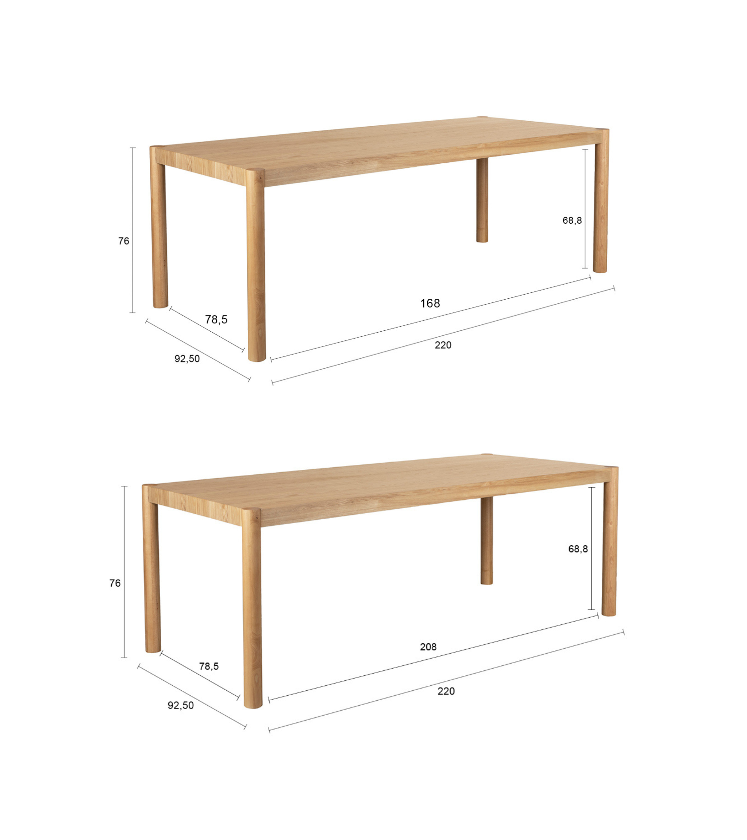 The table is made of solid rubberwood and ash veneer, which highlights the natural grain of the wood and adds coziness to the interior. It is available in various sizes, making it easy to fit into your space - whether in a larger dining room or a more intimate setting.