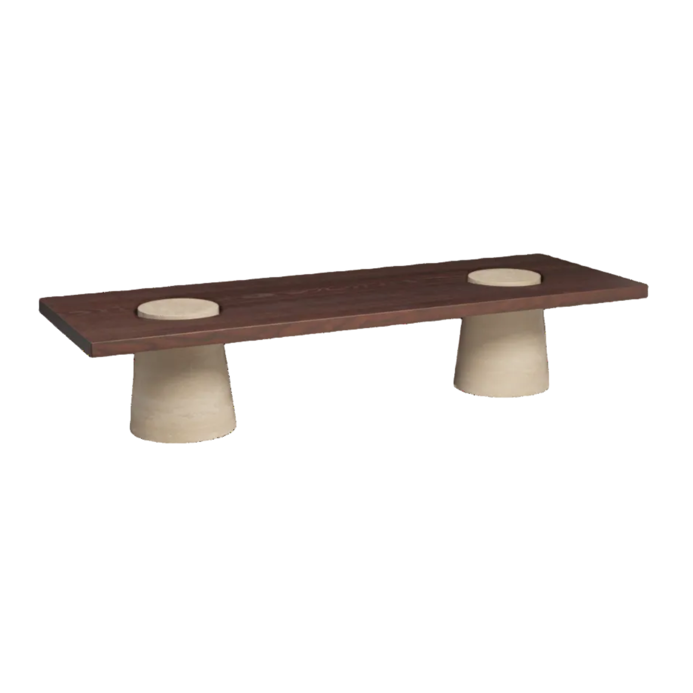 The Grova coffee table is a unique blend of sculptural form and natural materials, creating a striking element for interior design. This table, made from FSC™ certified ash wood and travertine, features a distinctive design inspired by nature, reminiscent of the structure of mangrove roots. Thanks to its shape, the designer table serves not only a functional purpose but also a decorative one, becoming the focal point of the space.
