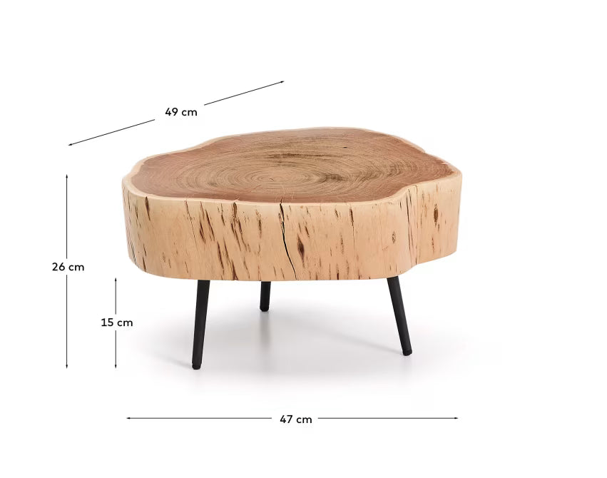 TANIVE coffee table made of light acacia wood with a black base