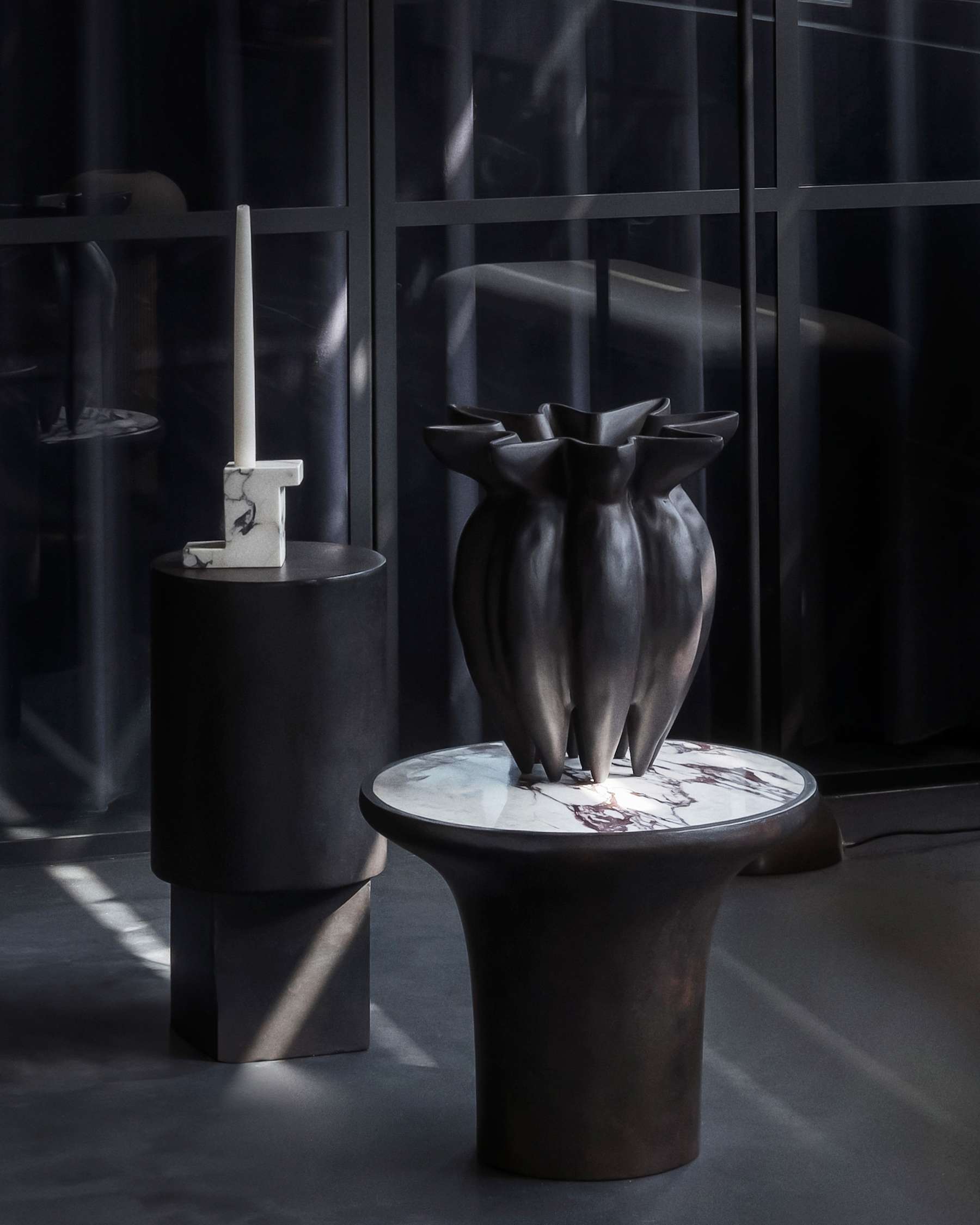 Coffee table Trumpet to exceptional furniture inspired design lat 70., which delights elegance formy i nobility materials. His characteristic, trumpet-shaped silhouette based jest na bazie z concrete fibrous i crowned round blatem z natural marmore Calacatta. Soft line i geometric simplicity create project o subtle but expressive characteristics, which introduces do interiors harmony i artistic expression. Polished surface blatu delicate reflects light, giving table visual lightness i depth.