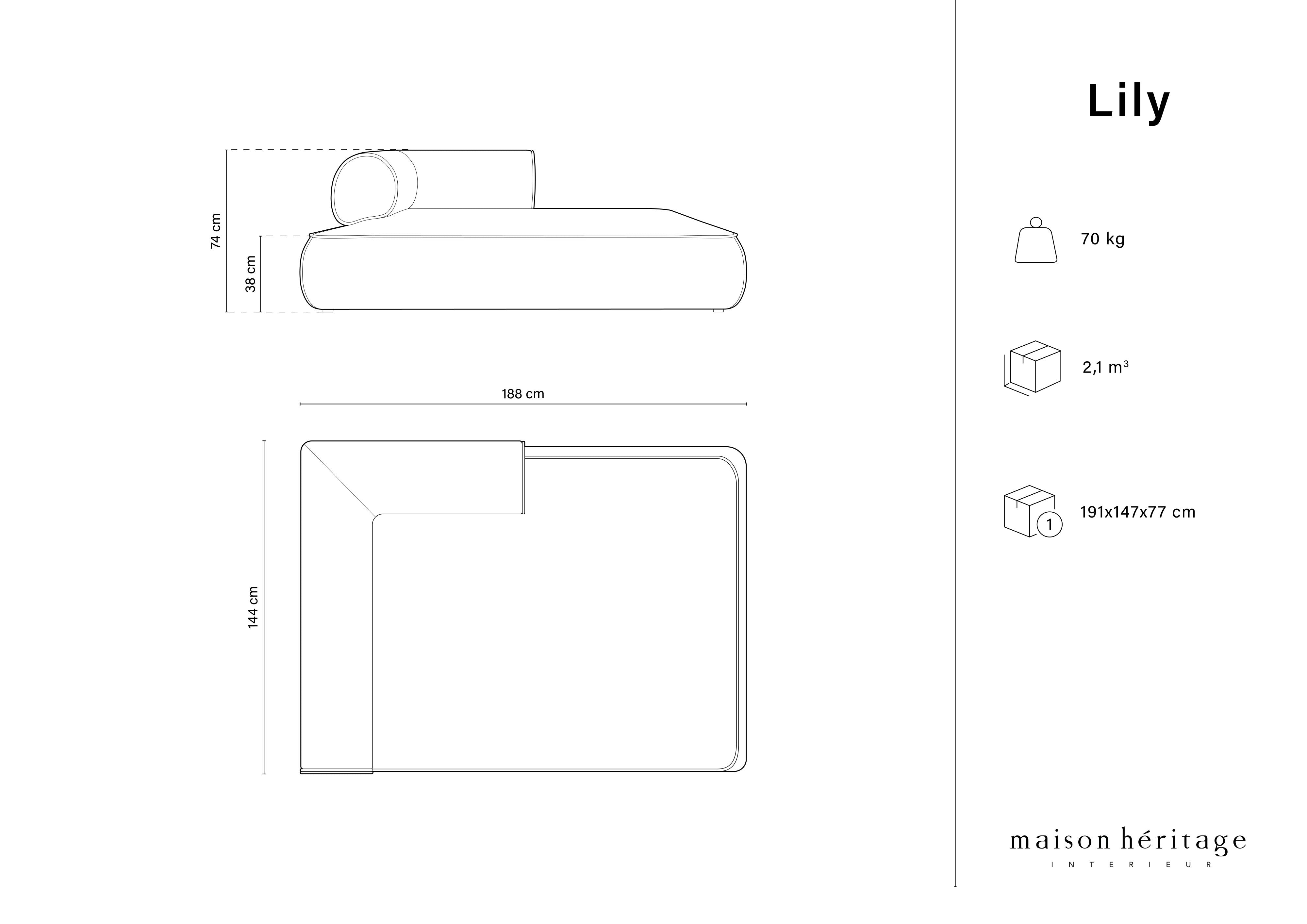 Szezlong w tkaninie szenilowej prawostronny LILY burgundowy Maison Heritage    Eye on Design