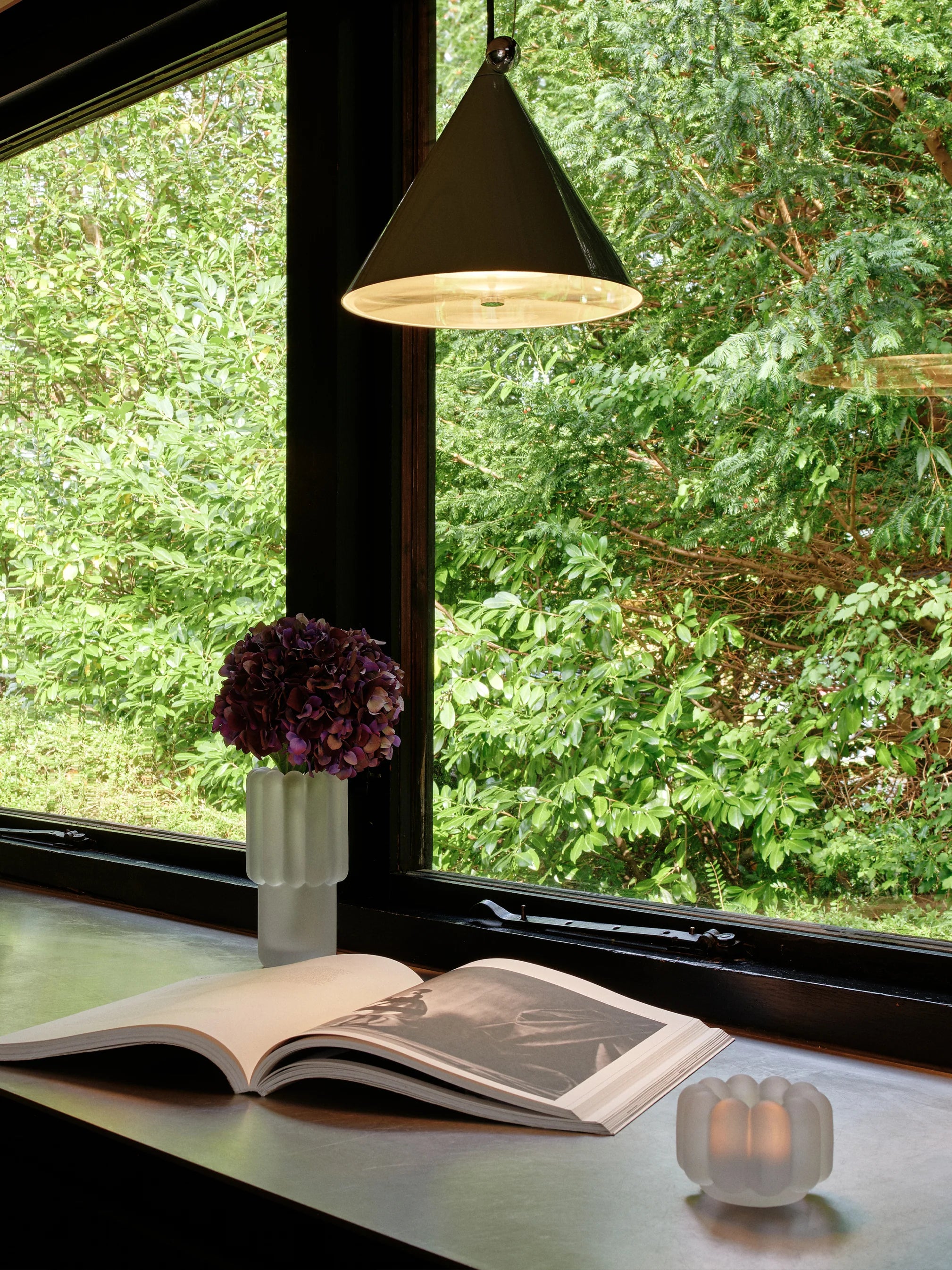 The production process highlights the artisanal character of the design. Glowing glass pieces are lowered into cast iron molds and pressed, giving each piece a unique appearance. This modern candle holder combines functional simplicity with a sculptural form, making it perfect for a table, dresser, or in table arrangements. The designer candle holder Press brings light, texture, and timeless elegance of glass into your interior.