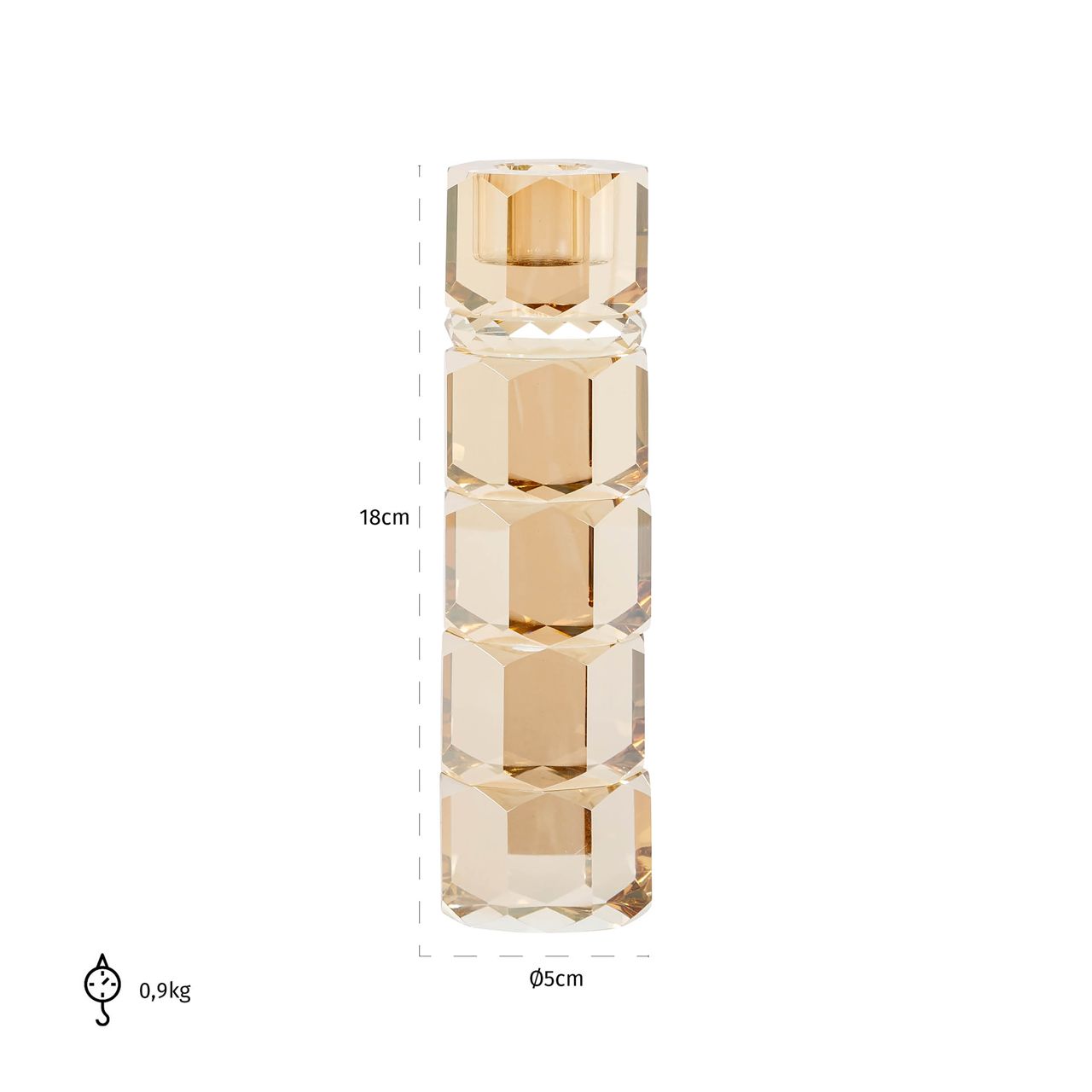 Exclusive Zofia Candle Holder made of glass in a golden color is an elegant decorative element that will add shine and sophistication to your interior. Its faceted surface beautifully reflects light, creating a unique play of reflections and highlighting the noble character of the glass. The slender form makes the candle holder perfectly suited for a table, dresser, or shelf, becoming a refined accent in the arrangement.
