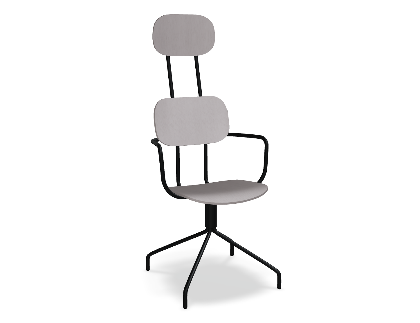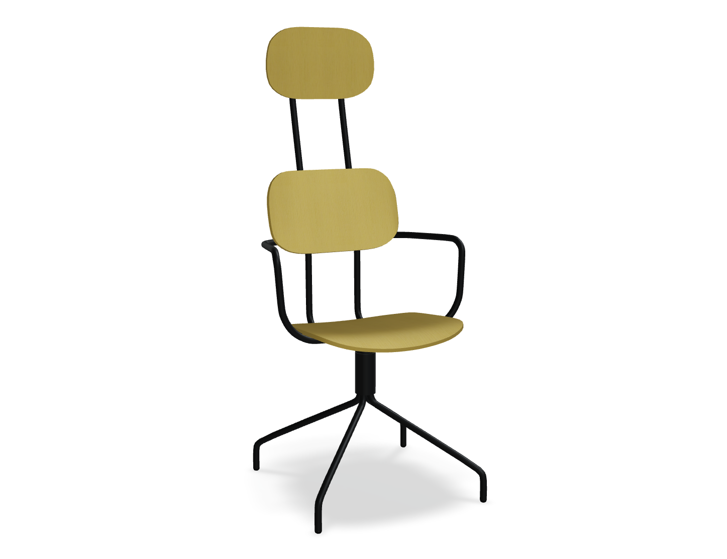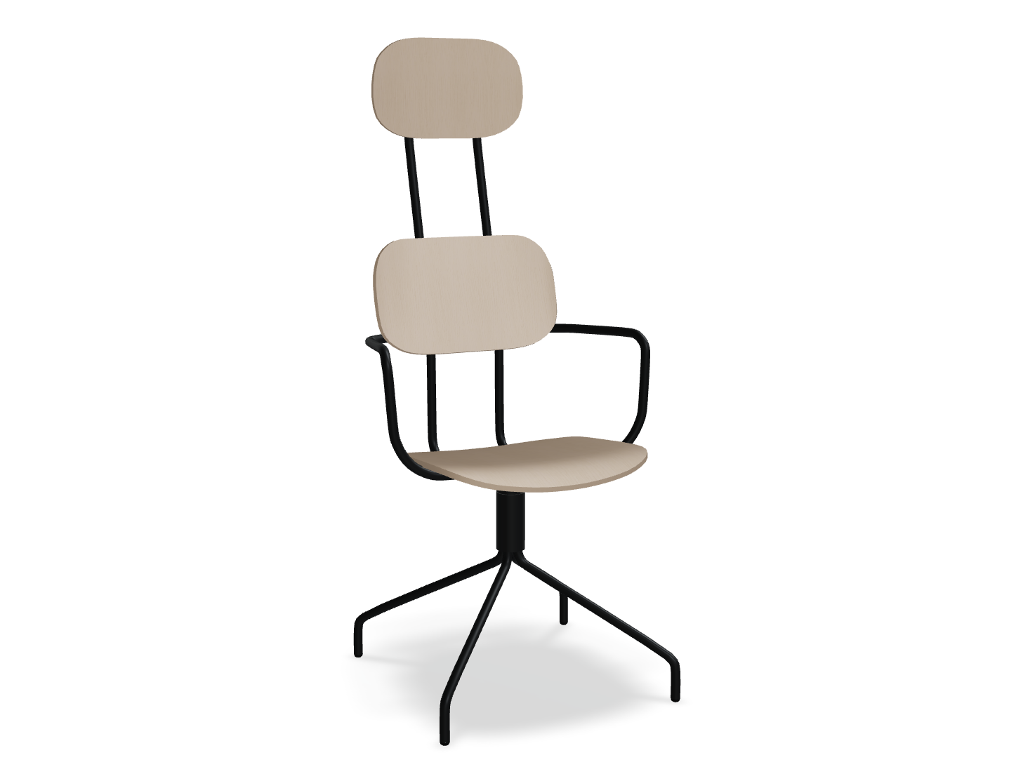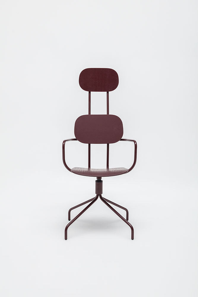 Swivel chair The new school with a headrest, designed by Studio Form US with Love, attracts attention with a modern form with double support. This backrest not only emphasizes modern design, but also provides excellent support for the whole back. The rotating base guarantees freedom of movement, and optional armrests further increase the comfort of use. The plywood version is distinguished by durability and ease of care, which makes it an ideal choice to the space used by many people.