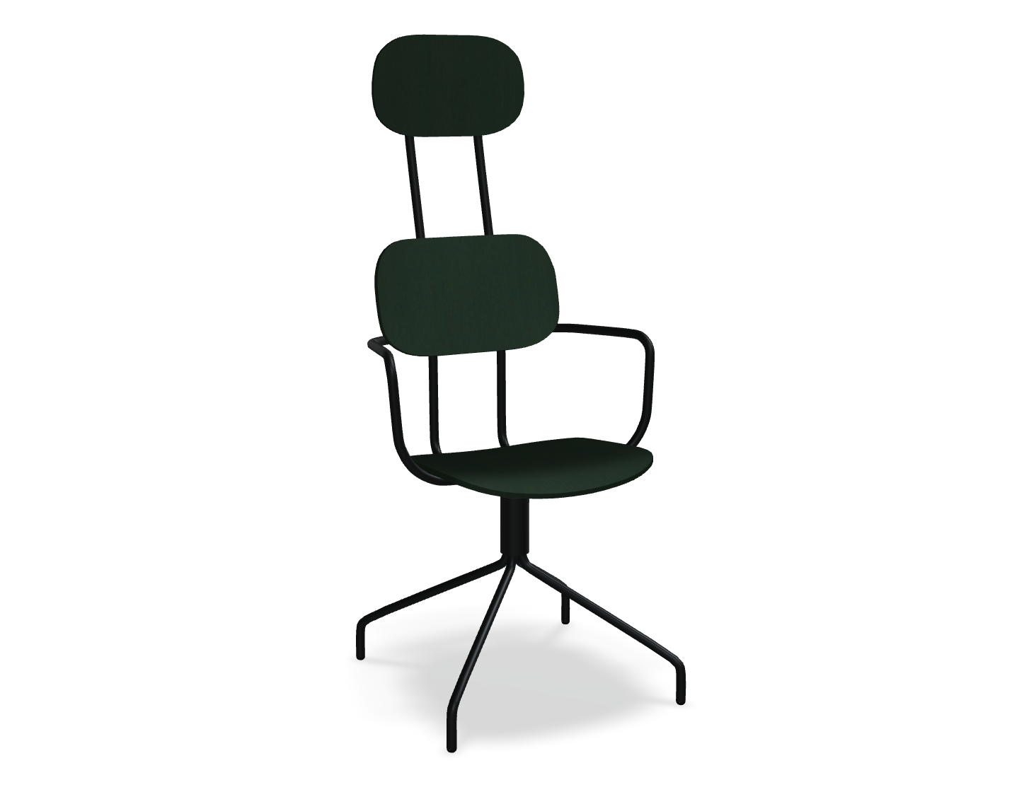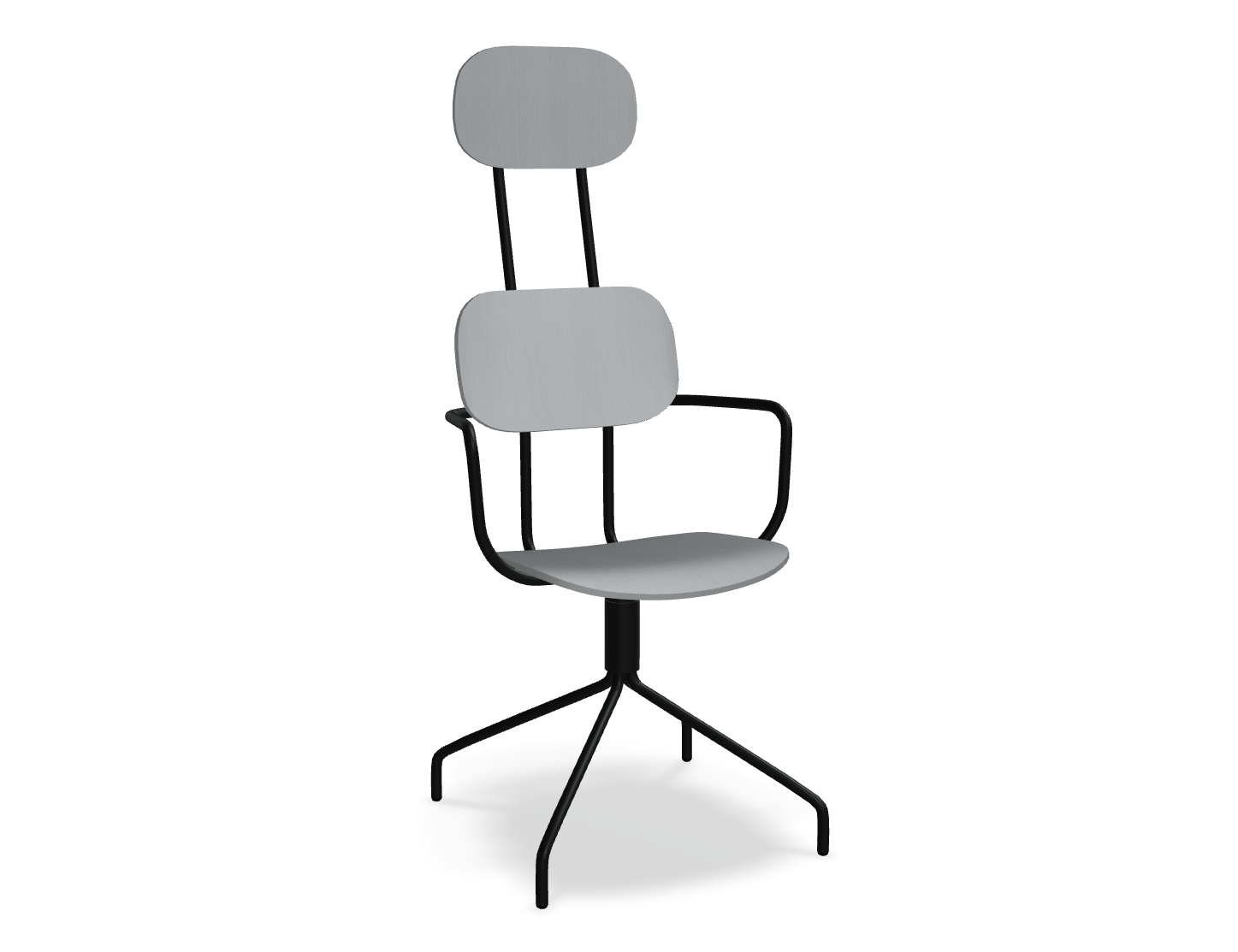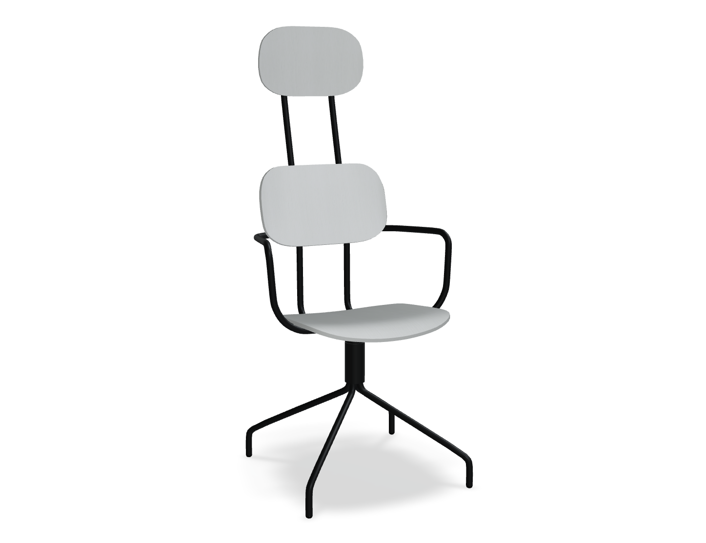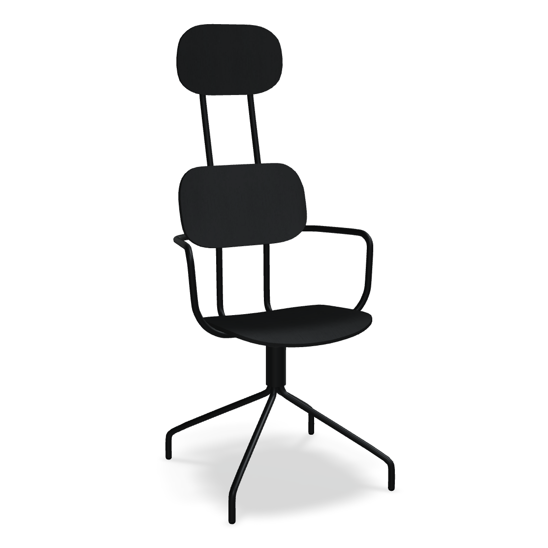 Swivel chair The new school with a headrest, designed by Studio Form US with Love, attracts attention with a modern form with double support. This backrest not only emphasizes modern design, but also provides excellent support for the whole back. The rotating base guarantees freedom of movement, and optional armrests further increase the comfort of use. The plywood version is distinguished by durability and ease of care, which makes it an ideal choice to the space used by many people.
