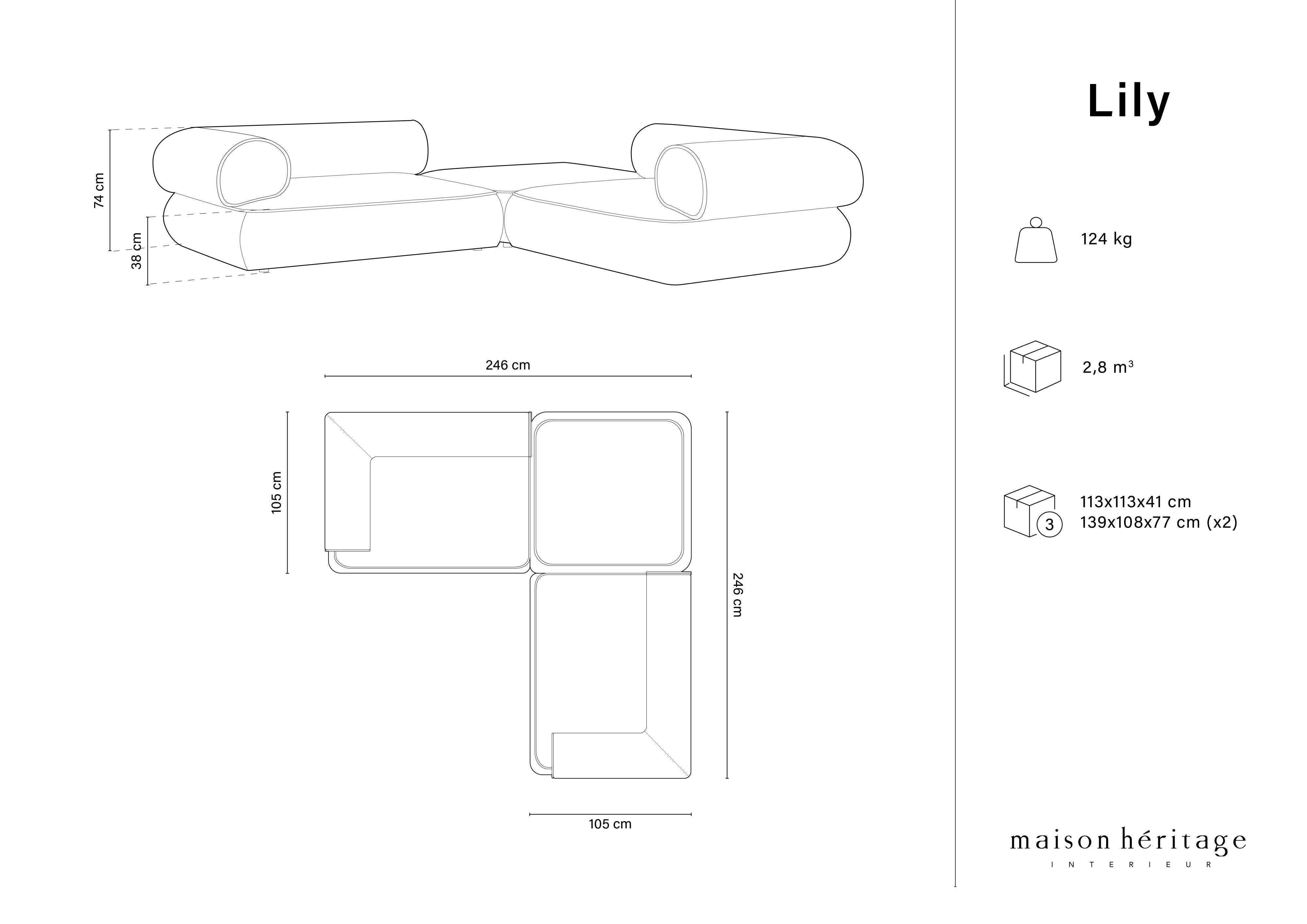 Deep seats are resilient and exceptionally comfortable. Delicate tufting and stitching highlight the classic character of the design. With its low and wide silhouette the corner sofa Lily brings a bit of coziness and warmth to the interior. The collection offers various combinations of sofas and corner sofas, as well as a chaise longue and a large pouf, allowing you to create a unique decor.