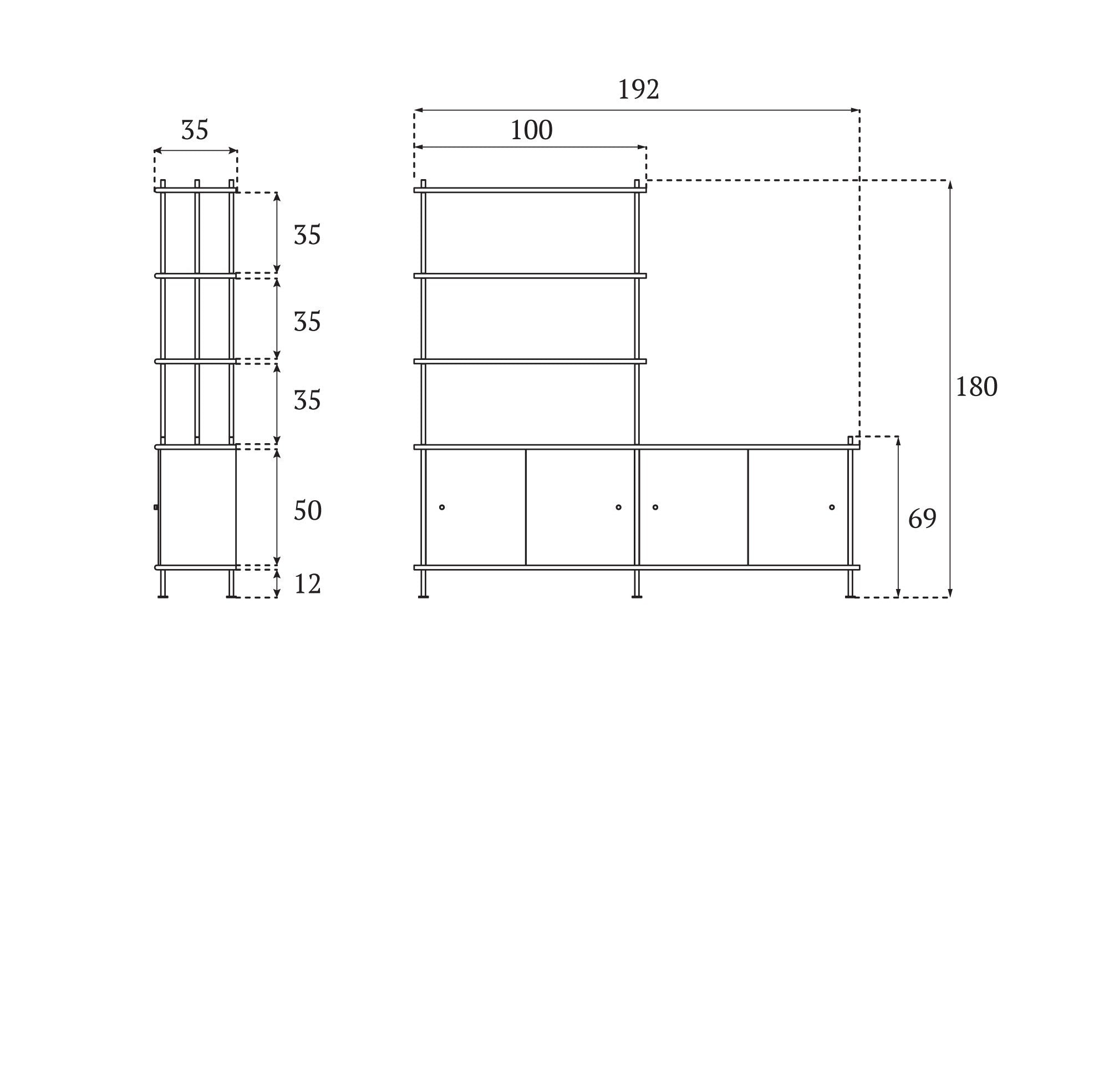 Number of shelves: 1 long shelf