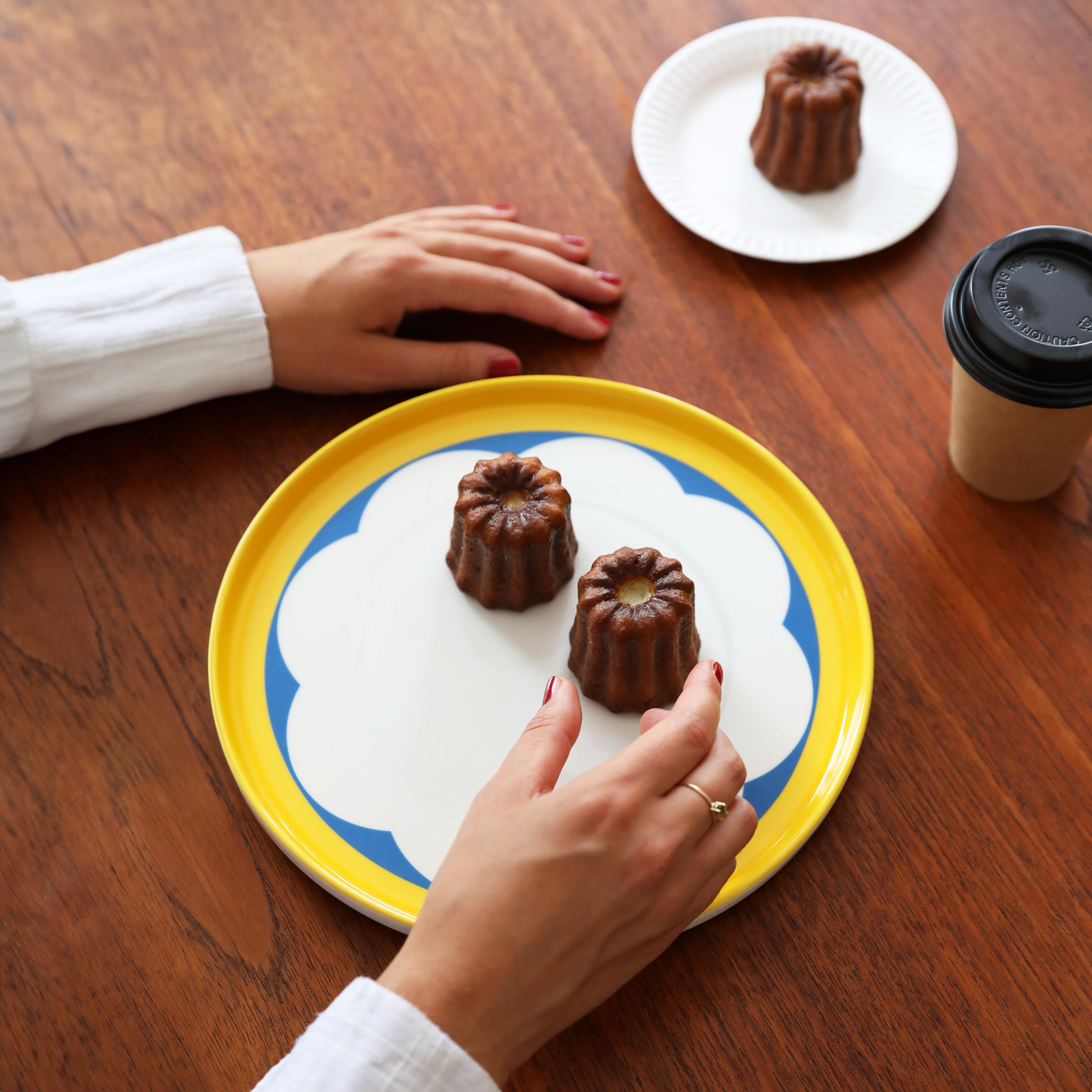DAYDREAM ARCH white dinner plate with yellow and blue