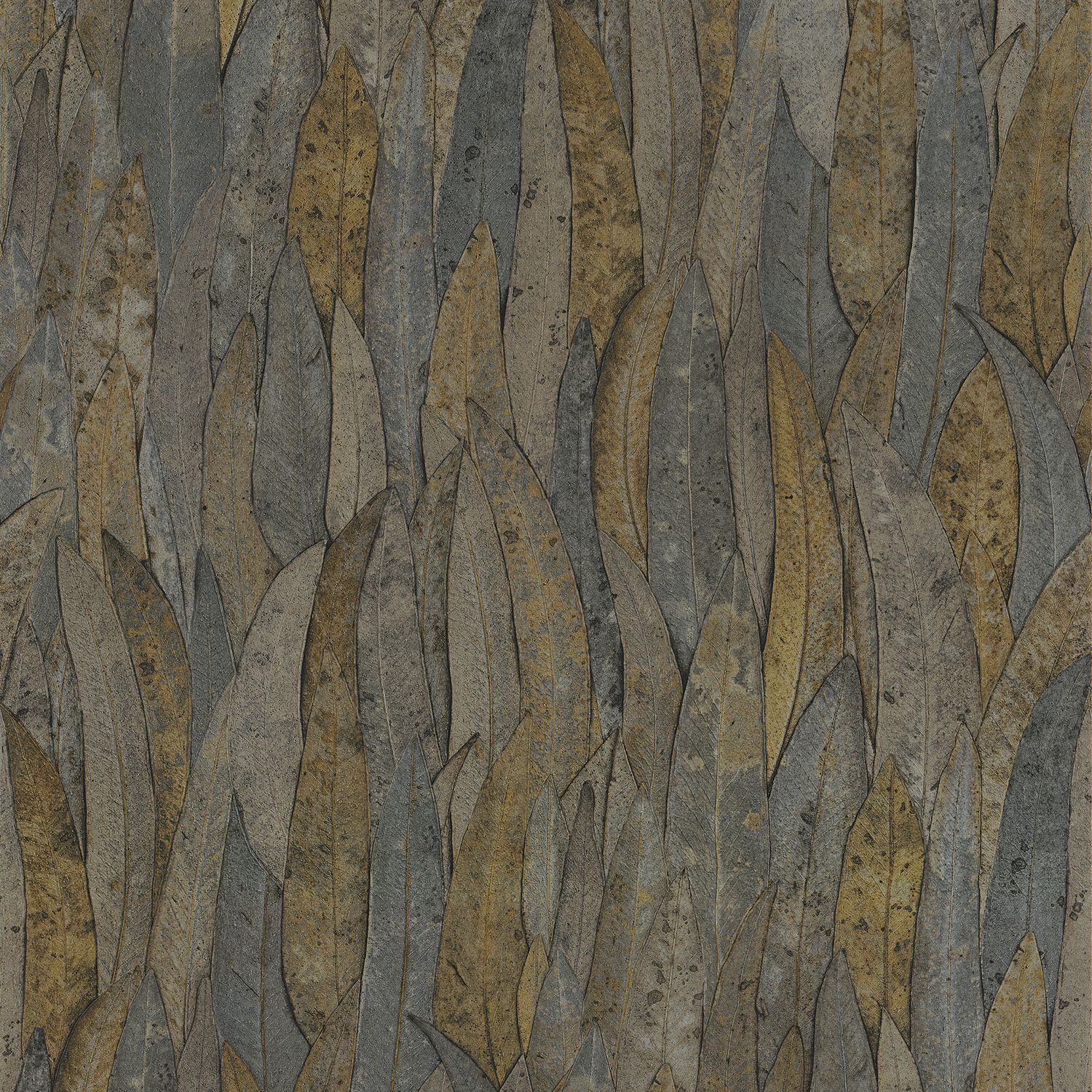 Structural wallpaper with a eucalyptus leaf plant motif NELUWA - ANTHRACITE