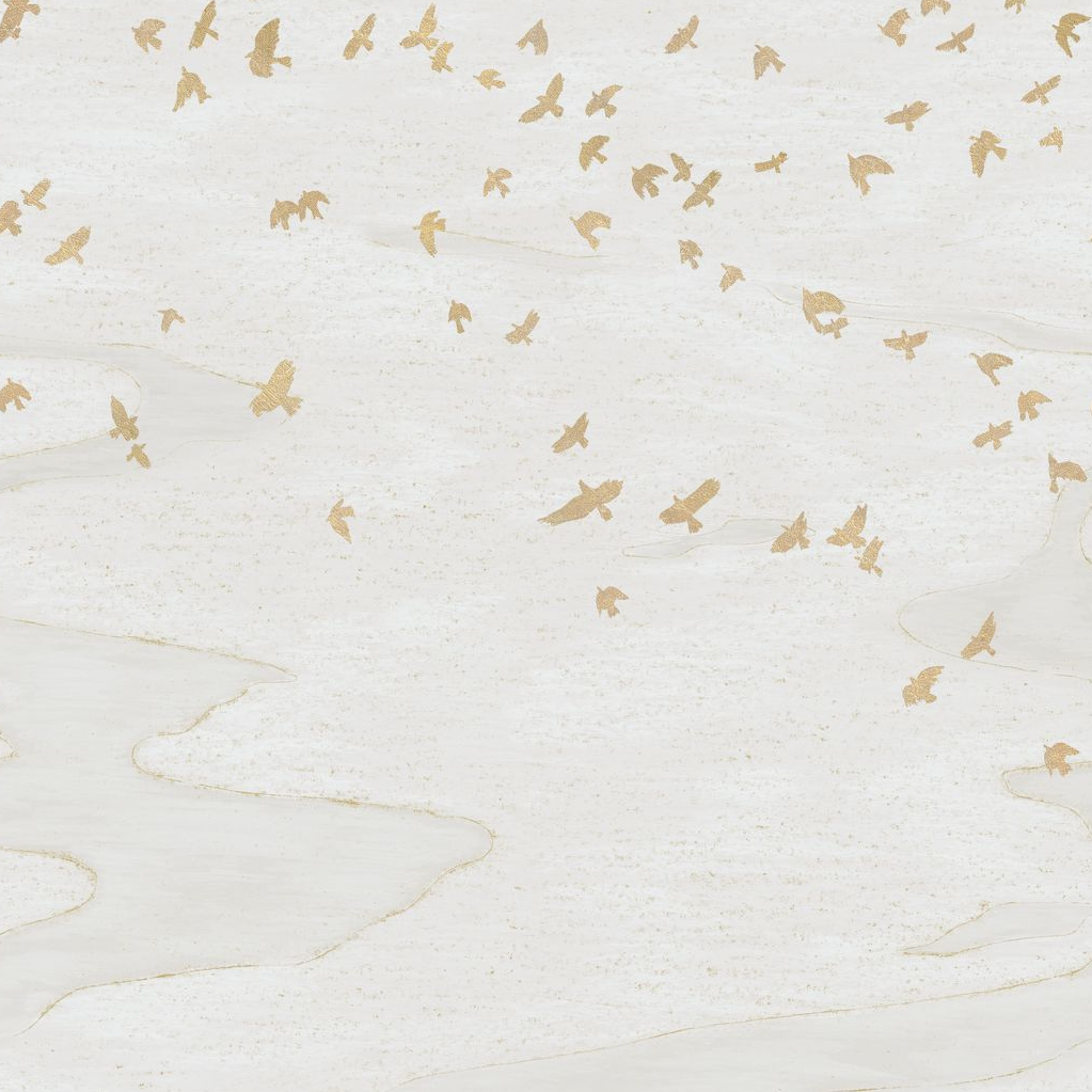 Animal-themed mural of birds MIGRATION white with gold