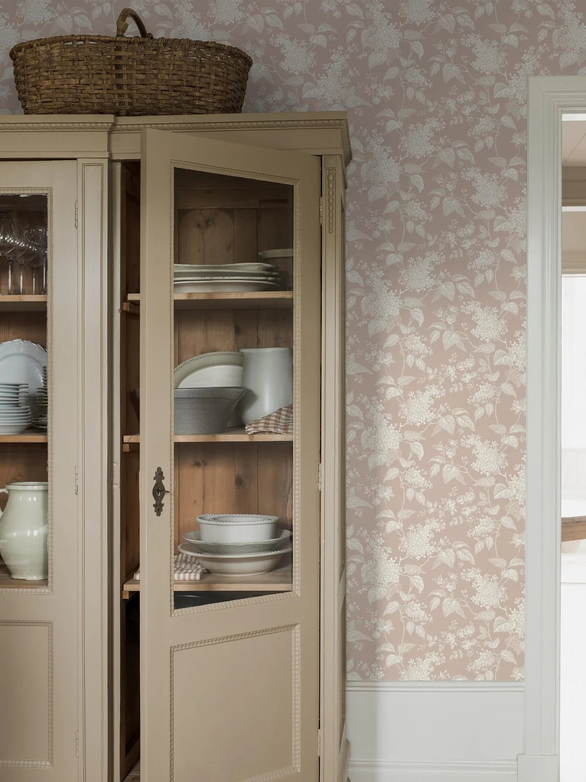 Wallpaper Syren is a romantic choice that introduces subtle elegance and a calm atmosphere to the interior. The pattern features delicate silhouettes of lilac branches and small roses that beautifully adorn the surface of the wallpaper. Inspired by an archival design from the 1920s, this wallpaper has a unique, nostalgic character that perfectly fits classic and romantic interiors.
