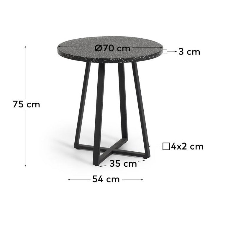 Table Tella is not afraid of weather conditions - from rain to sun. Made from high-quality materials, such as weather-resistant terrazzo and steel, it maintains its appearance and durability for a long time. The round tabletop is not only a practical place for your favorite drink or decorations but also a stylish element that will fit into various outdoor spaces. Tella is not just a black table - it is a choice of elegance, durability, and functionality that will highlight the unique character of your terrace or garden.