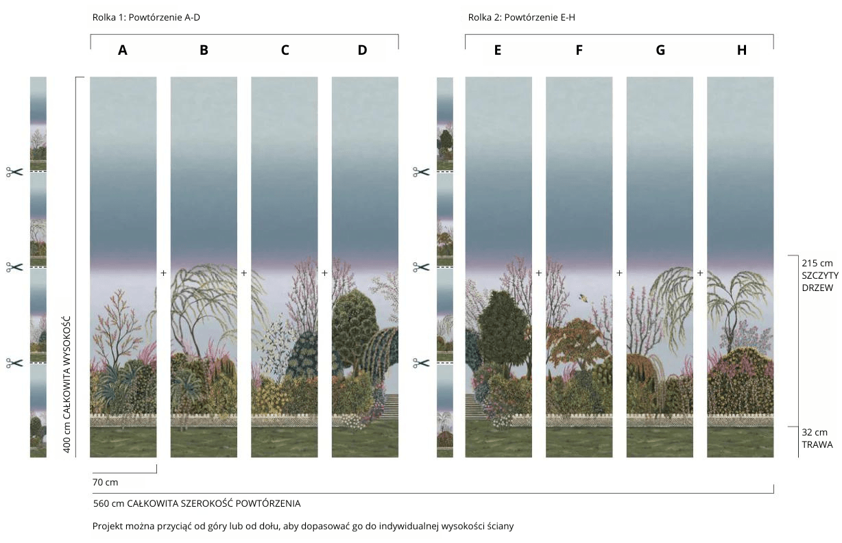 The price is for 2 rollers total dimension of the 5.6 x 4.9 m mural. The width of the roller is 70 cm.