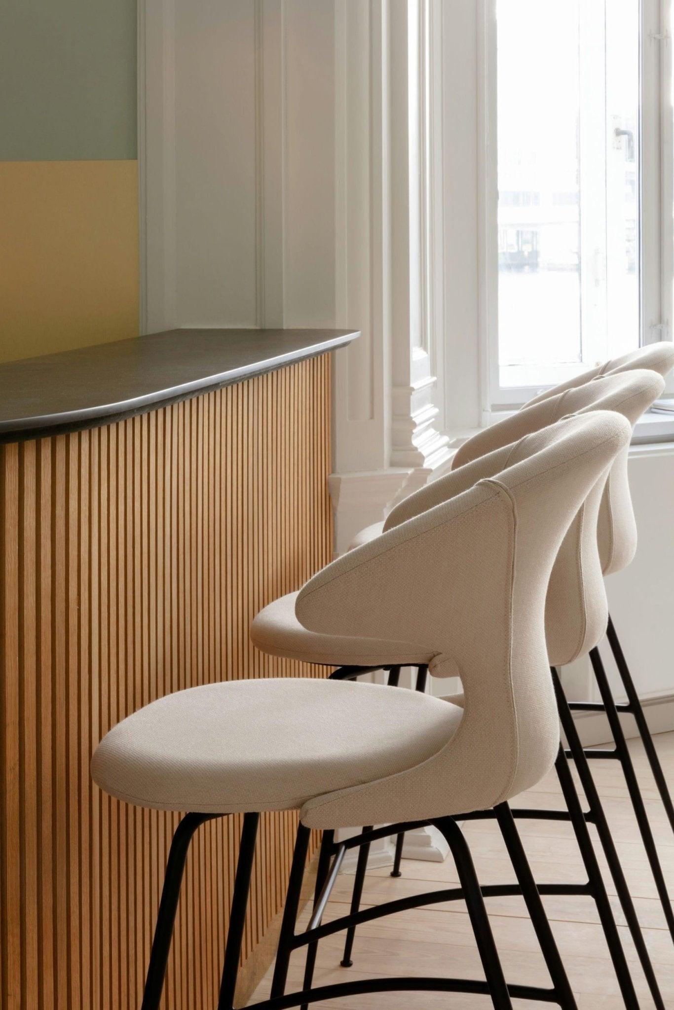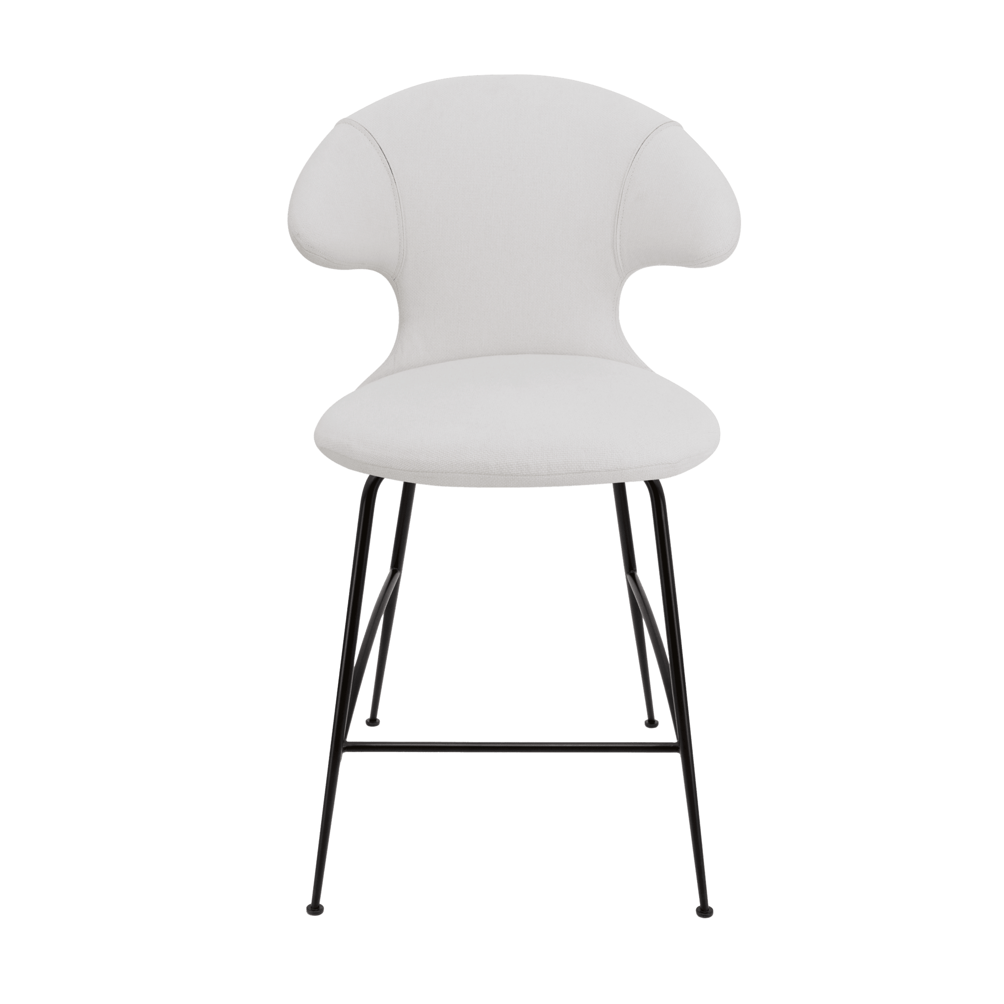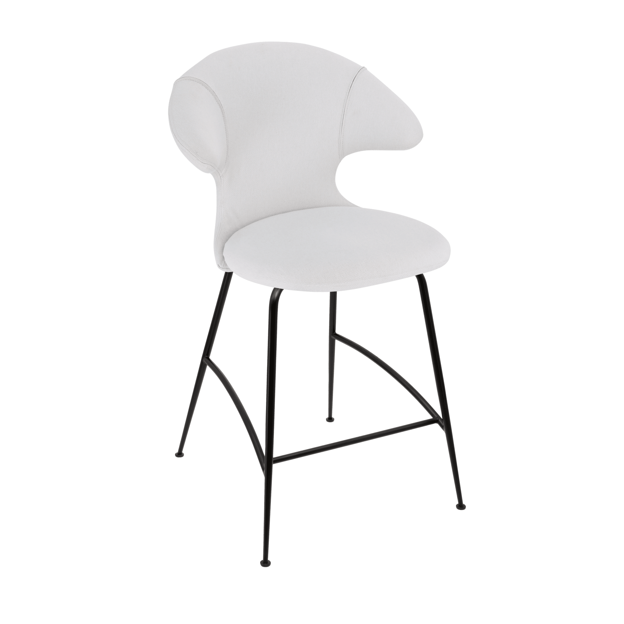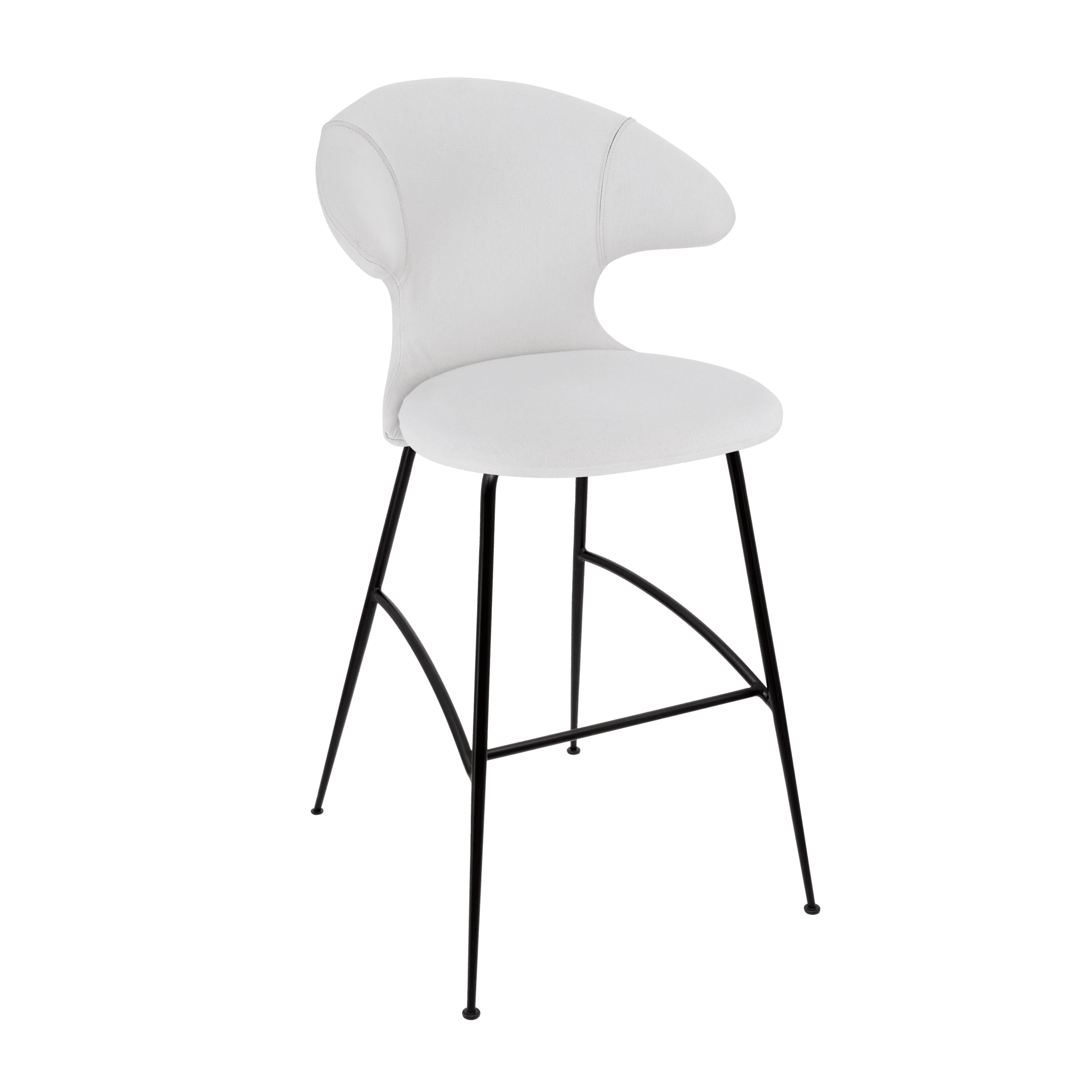 The stool Time Flies is available with legs in gold, silver, and black, offered in 17 carefully selected shades of the fully recycled Horizons fabric. Additionally, the chair is available in two cozy variants from the Teddy Bear fabric collection: plush brown and plush white.