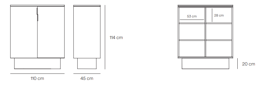 Each of the elements forming this cabinet fits perfectly with each other, forming a uniform block that rests on the central pedestal. Totem not only fulfills the practical role of the cabinet, but also is a unique interior decoration, adding elegance and a sophisticated character.