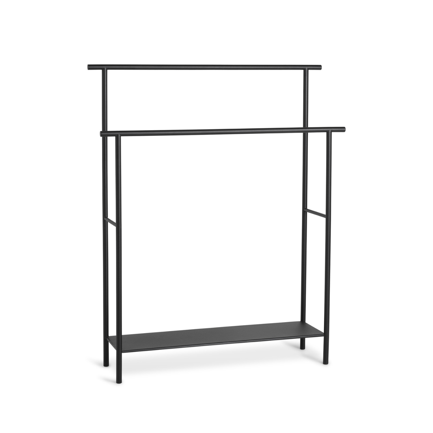 Towel Rack Dora is part of the extensive Dora collection, which includes freestanding furniture perfect for the bathroom. Made of powder-coated metal, the rack is rust-resistant, making it ideal for humid conditions. The Dora rack allows for the convenient hanging of several towels at once, and additionally offers storage space below, providing a practical and stylish solution for the bathroom.