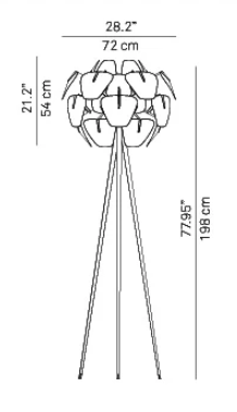Floor lamp Hope is a modern interpretation of a classic standing chandelier. It uses lightweight, polycarbonate flakes integrated with Fresnel lenses, which optimize the reflection and distraction of light, creating a warm and sparkling atmosphere. The structure is based on a steel frame, which ensures stability and durability, while maintaining a subtle and elegant look.