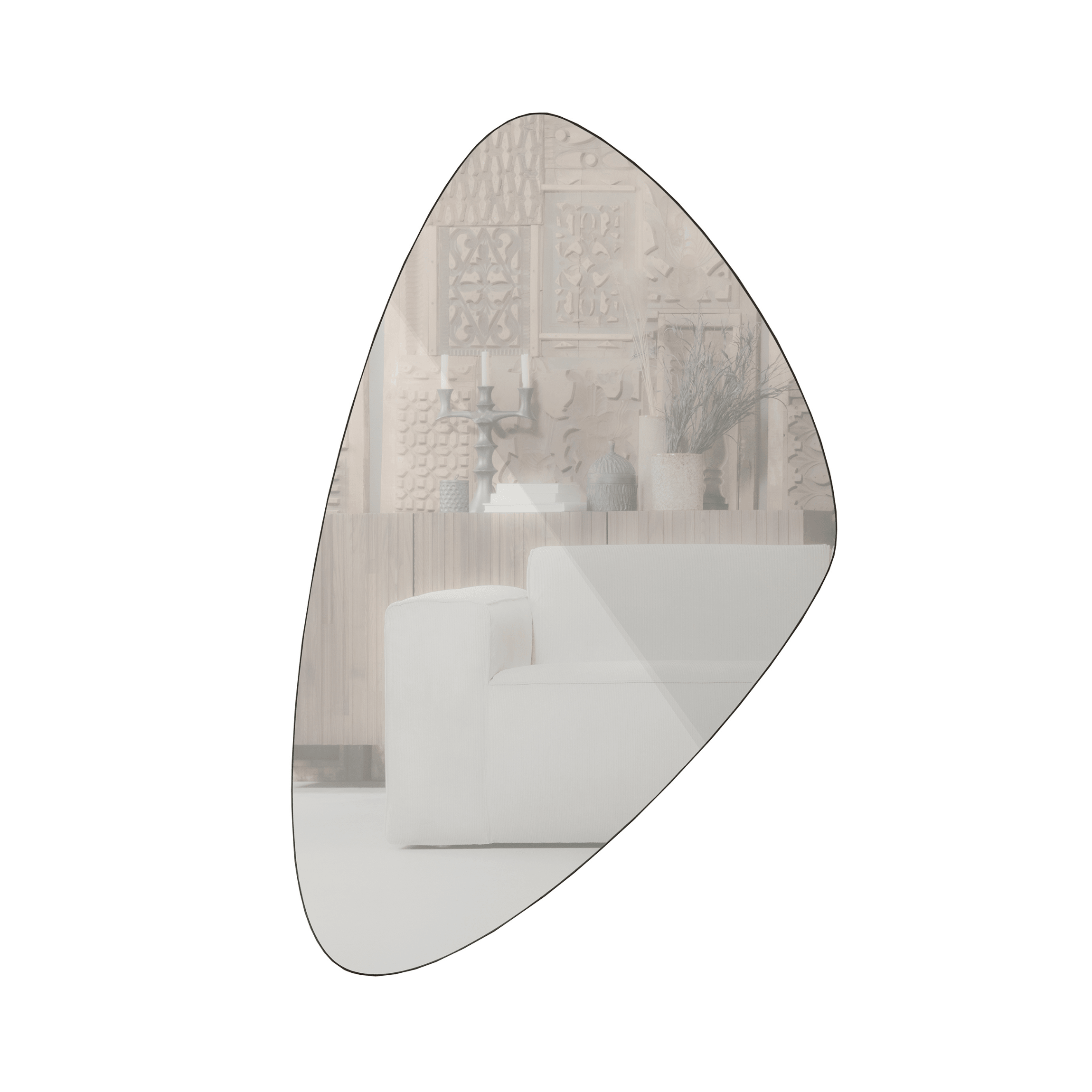 Mirror Philou is a minimalist proposal for those who value simplicity and elegance. Its uneven shape gives it a unique appearance, making it a beautiful accent in any room.