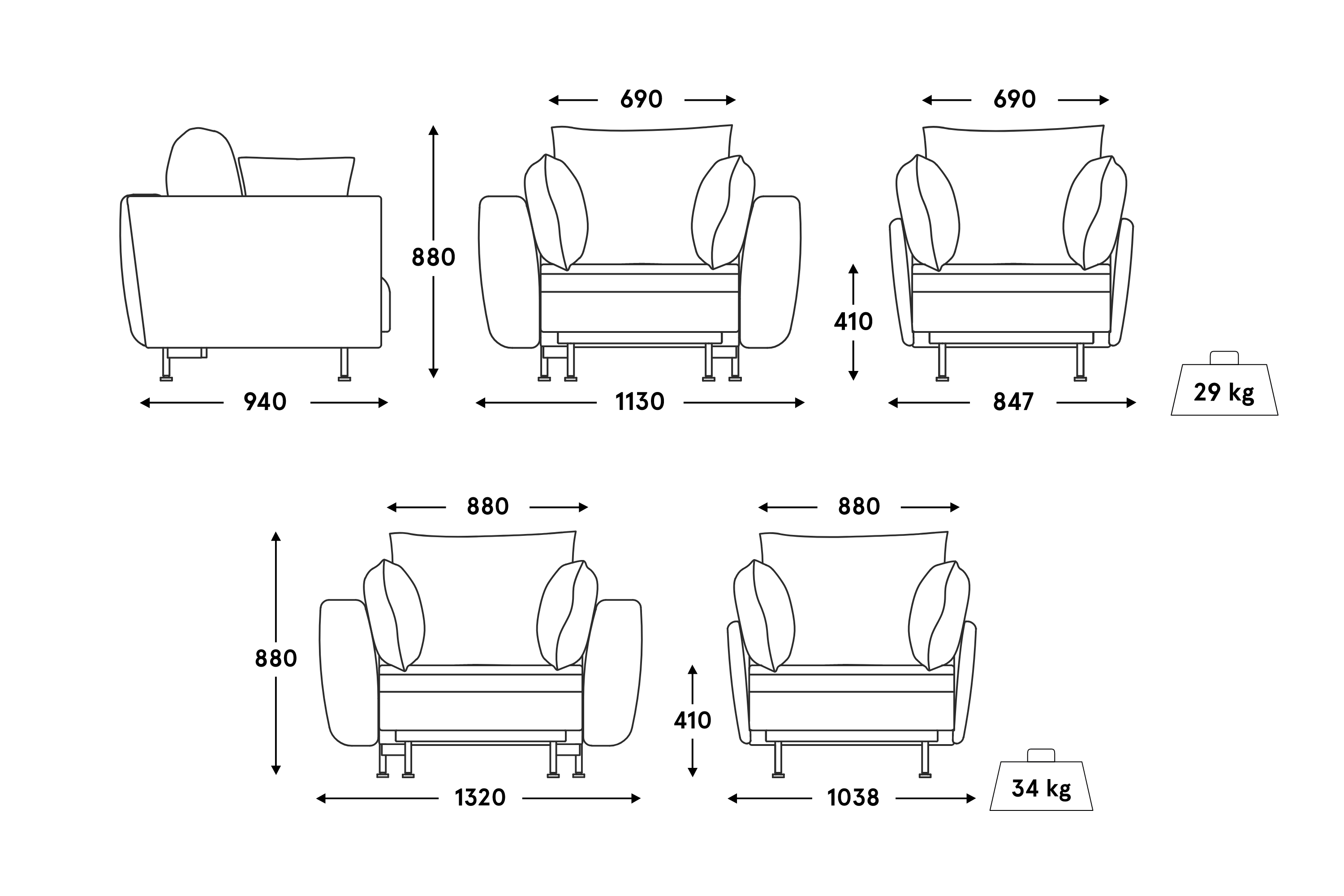 A comfortable seat with built -in springs and a soft foam support ensures comfort and durability. In addition, the armrests adapt to the natural curvature of the body, and the slender legs make cleaning under the armchair easier. Lotus is the perfect choice for both home and public spaces.