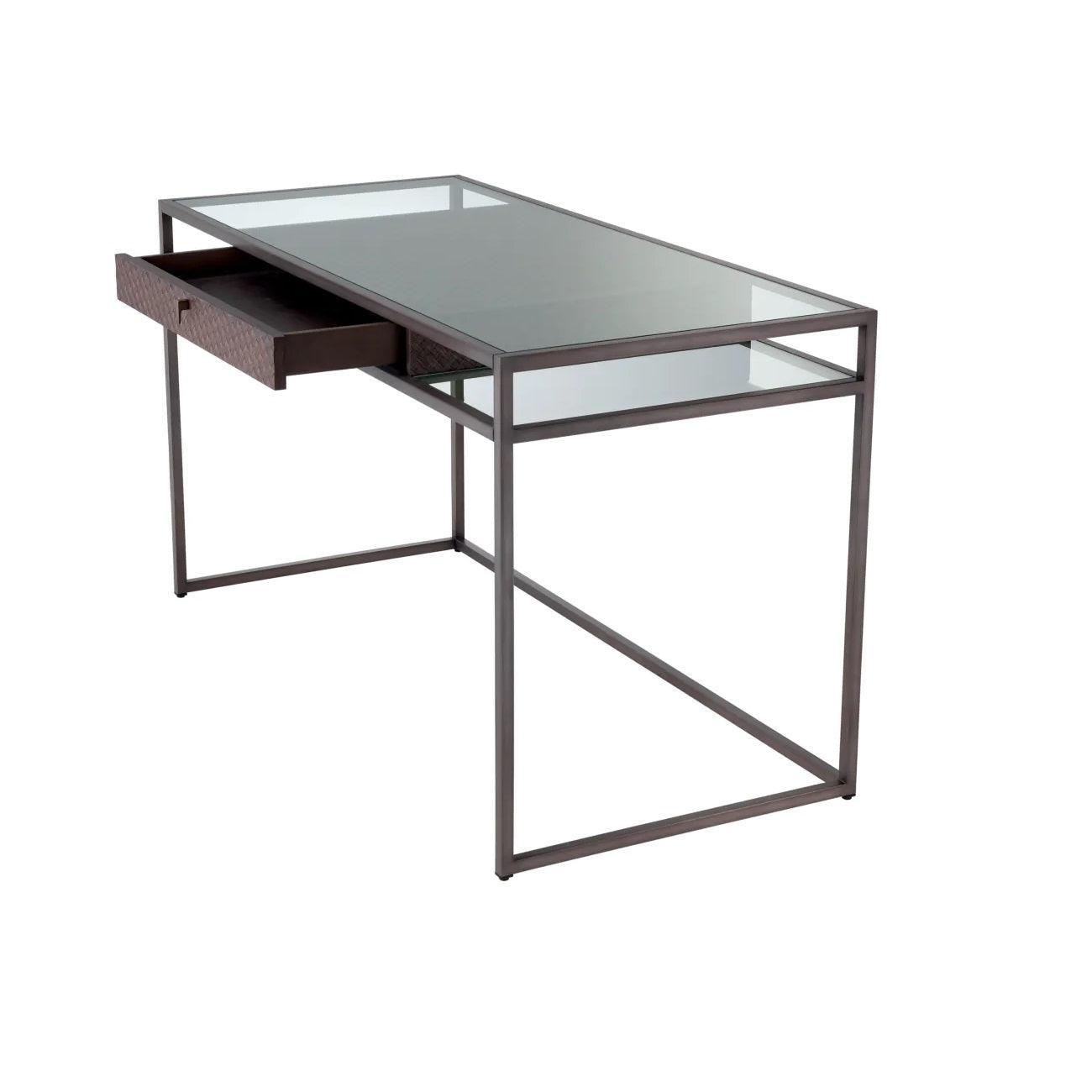 Biurko NAPA VALLEY ciemnobrązowy fornir ze szkłem Eichholtz    Eye on Design