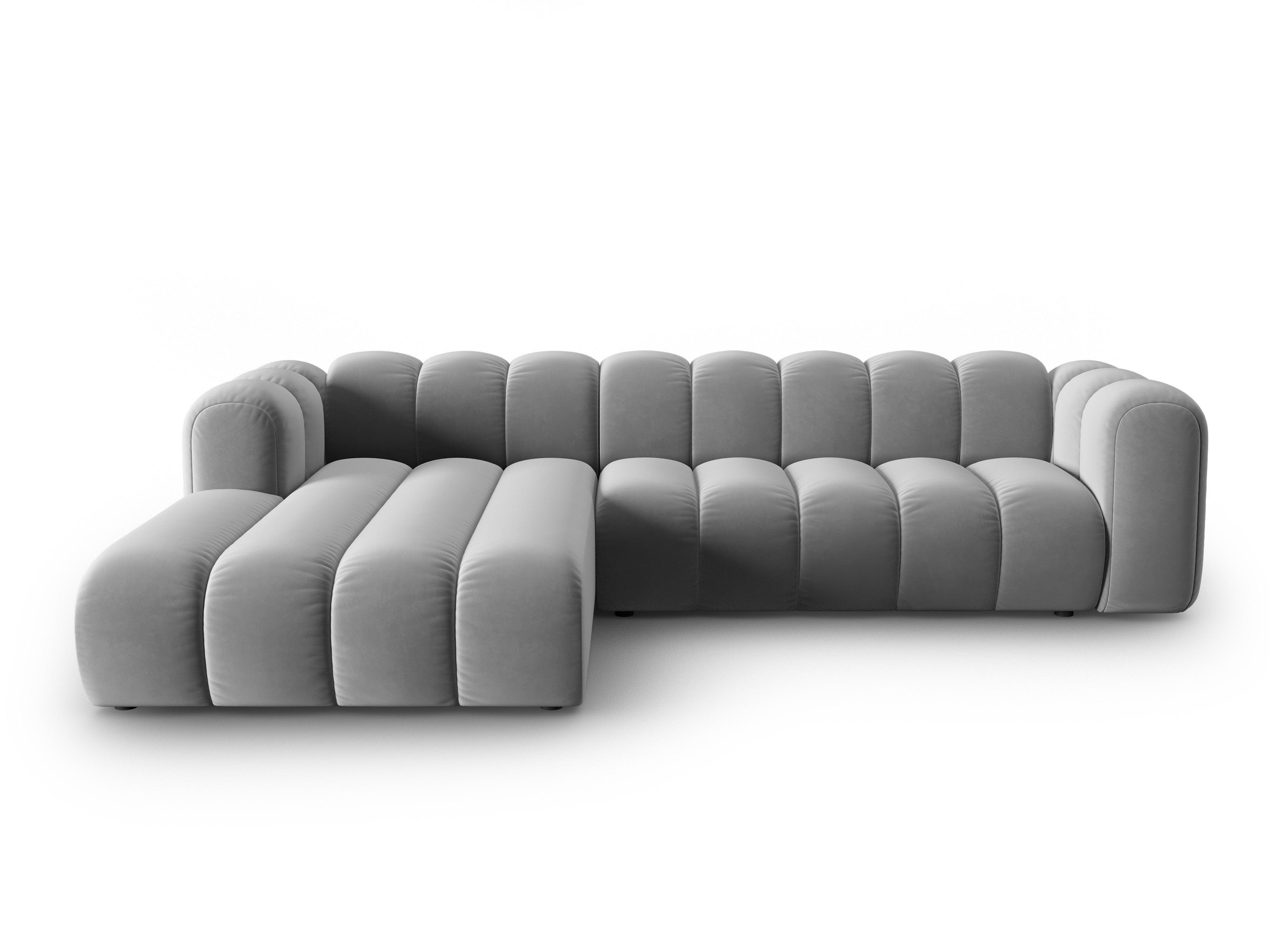 Velvet corner sofa for 4 people, left-sided LUPINE gray