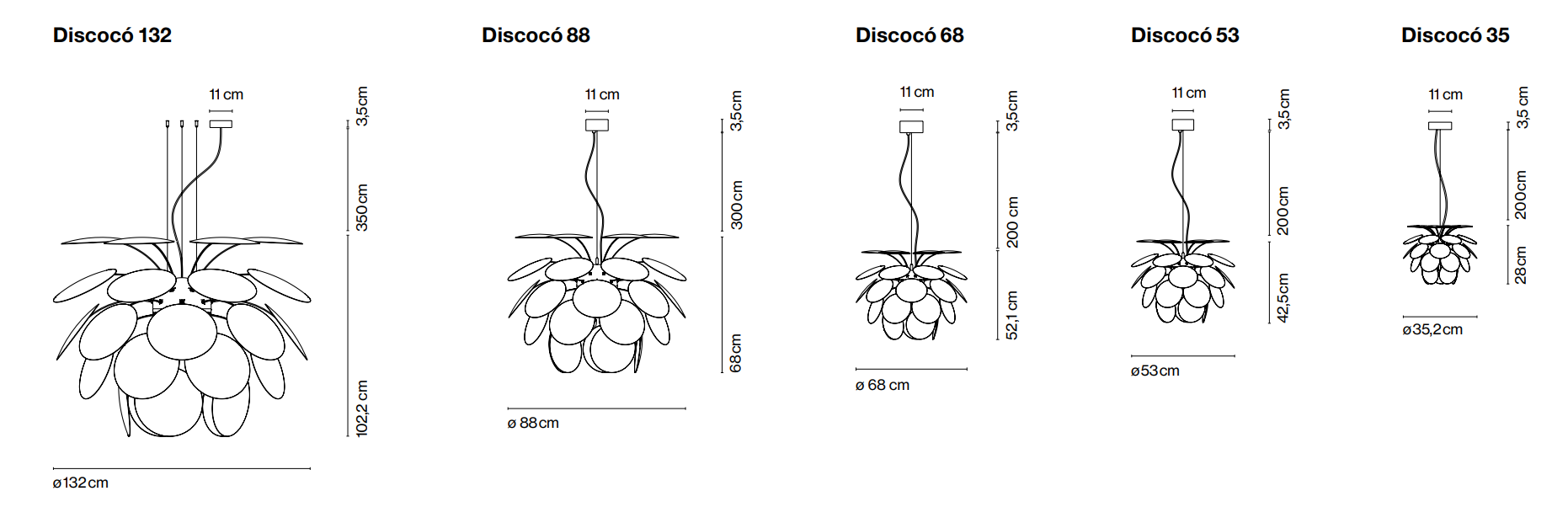 After turning off Discocó is a stunning object that catches the eye and fills the space. Available in white, gray, beige and gold-black in 5 different sizes, as well as in oak wood finish, high-quality material, which ensures unparalleled quality and comfort. The use of wood and making it light without moving an apparent or real weight is a challenge, which is why this version is only available in hanging format, 68 cm in diameter. In this wooden edition, the internal metal structure has a graphite-nickel finish.